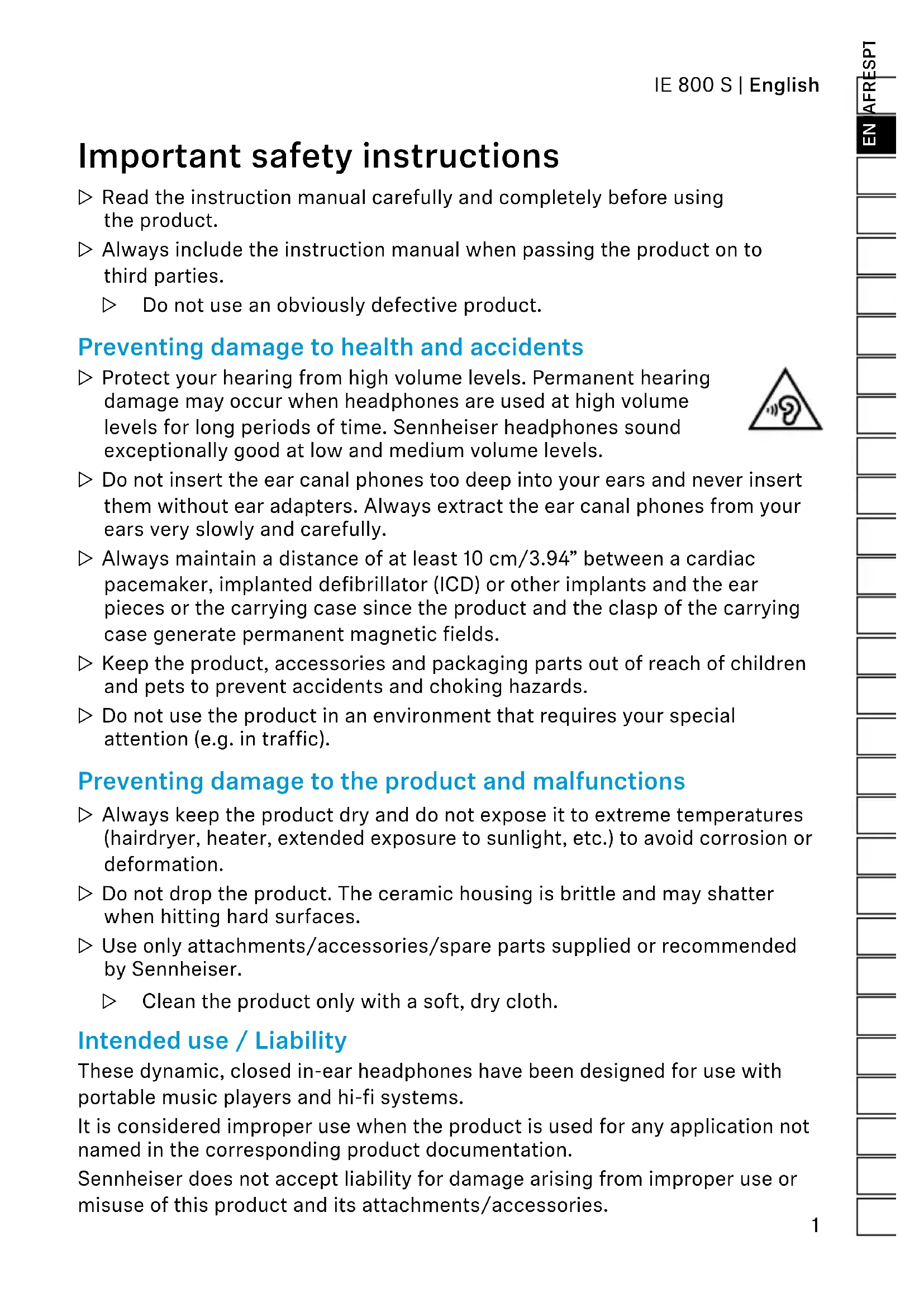 USER MANUAL IE 800 S SENNHEISER