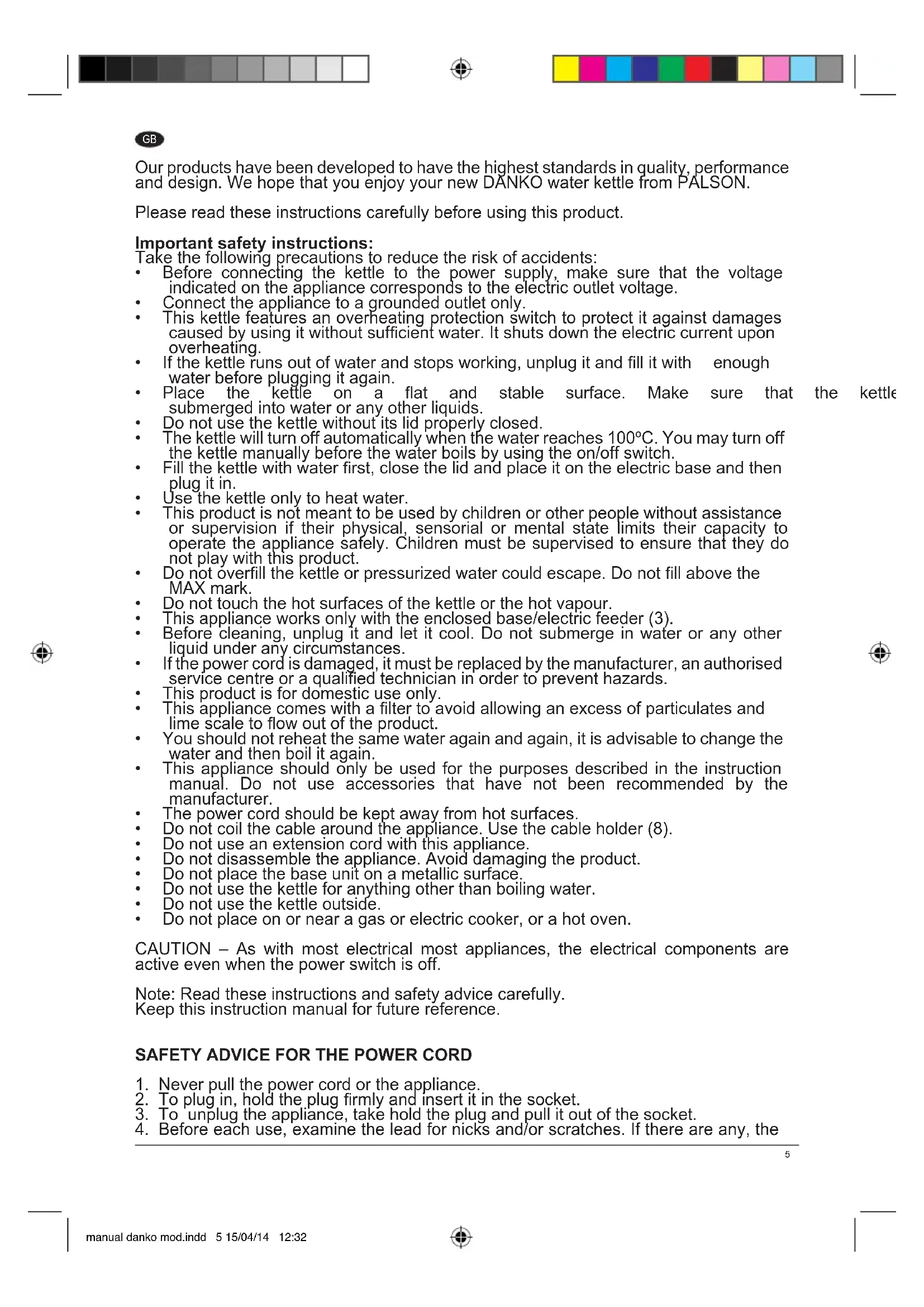 Download the instructions for your Kettle in PDF format for free! Find your manual Danko 30911 - PALSON and take your electronic device back in hand. On this page are published all the documents necessary for the use of your device. Danko 30911 by PALSON.