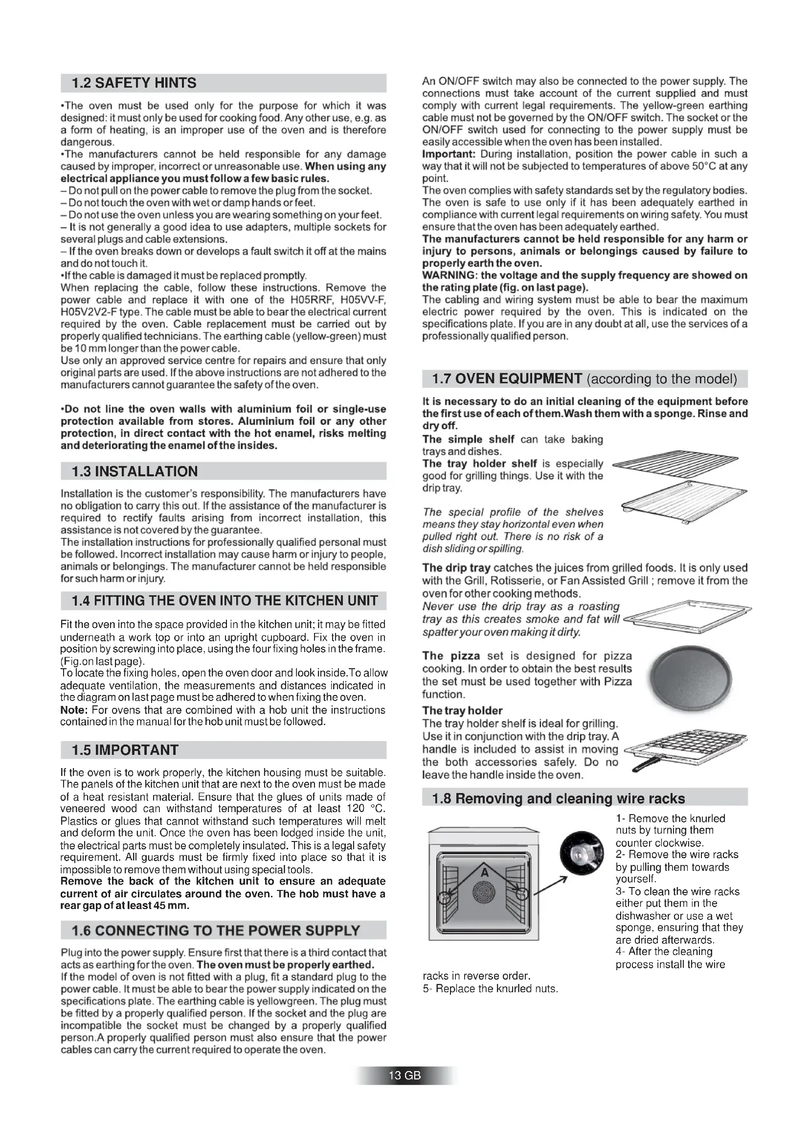 1.7 OVEN EQUIPMENT (according to the model)