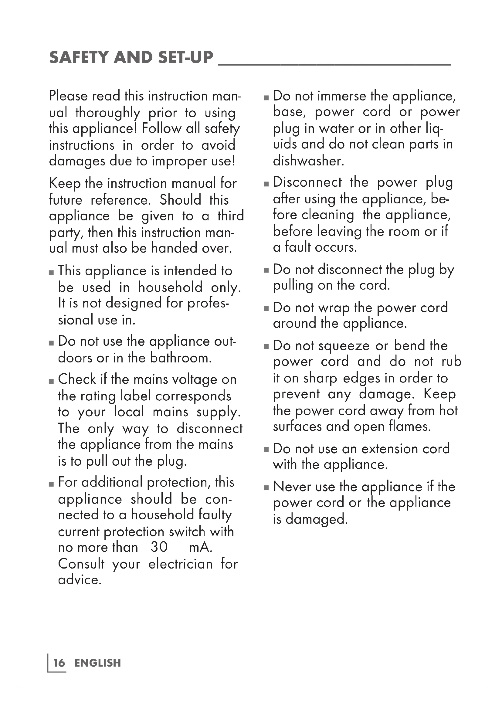 Please read this instruction man- ual thoroughly prior to using this appliance! Follow all safety instructions in order to avoid damages due to improper use! Keep the instruction manual for future reference. Should this appliance be given to a third party, then this instruction man- ual must also be handed over.