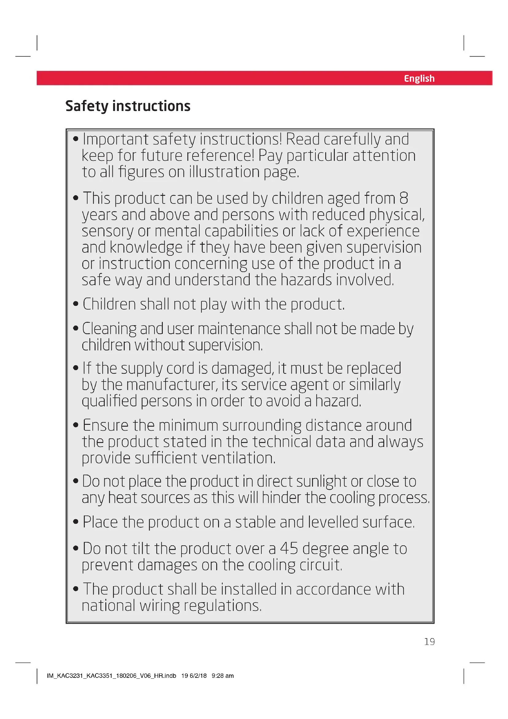 - The product shall be installed in accordance with national wiring regulations. IM_KAC3231_KAC3351_180206_V06_HR.indb 19 6/2/18 9:28 amEnglish