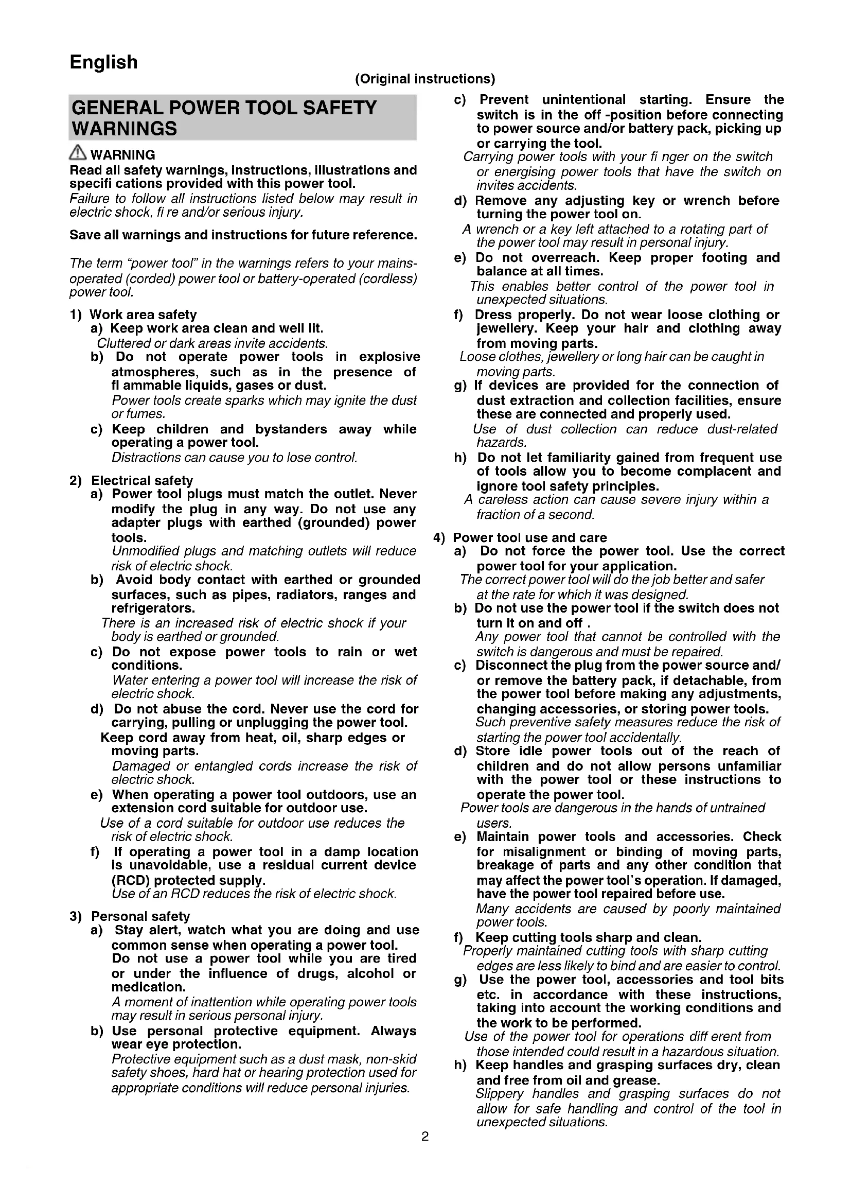 GENERAL POWER TOOL SAFETY