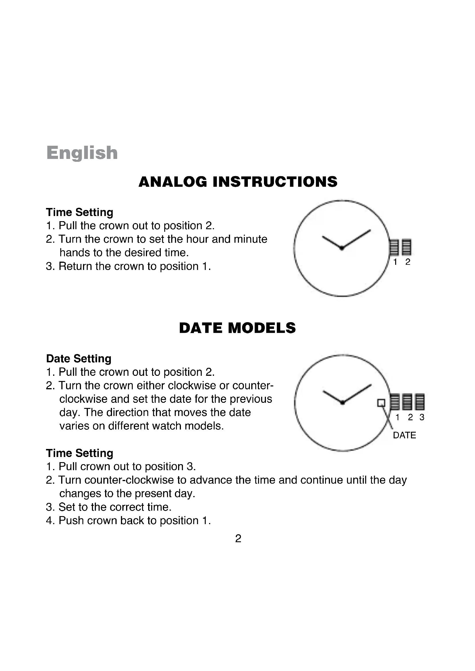 3. Push crown back to position 1.