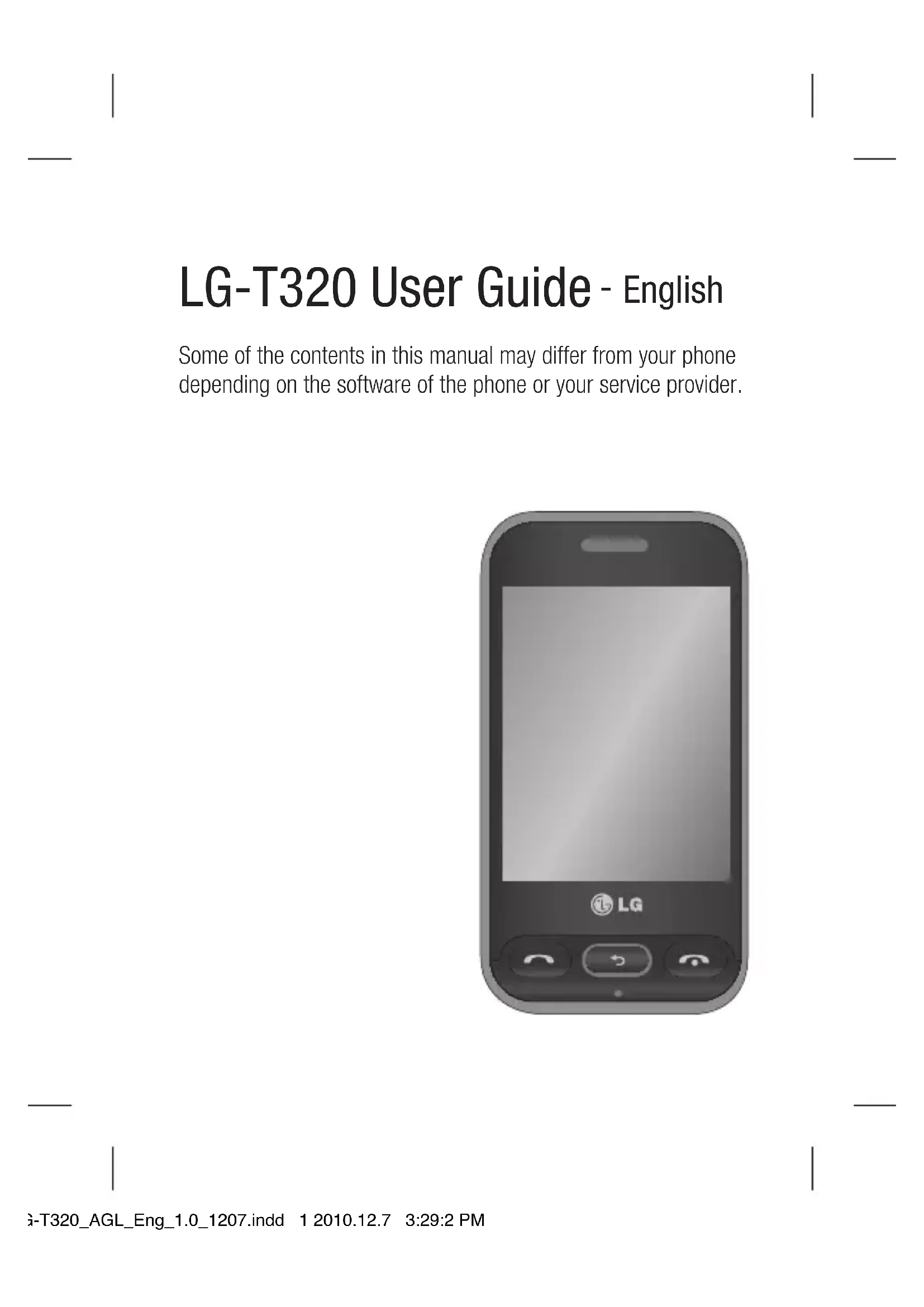- Use a hands-free kit, if available. LG-T320_AGL_Eng_1.0_1207.indd 4 2010.12.7 3:29:3 PM5