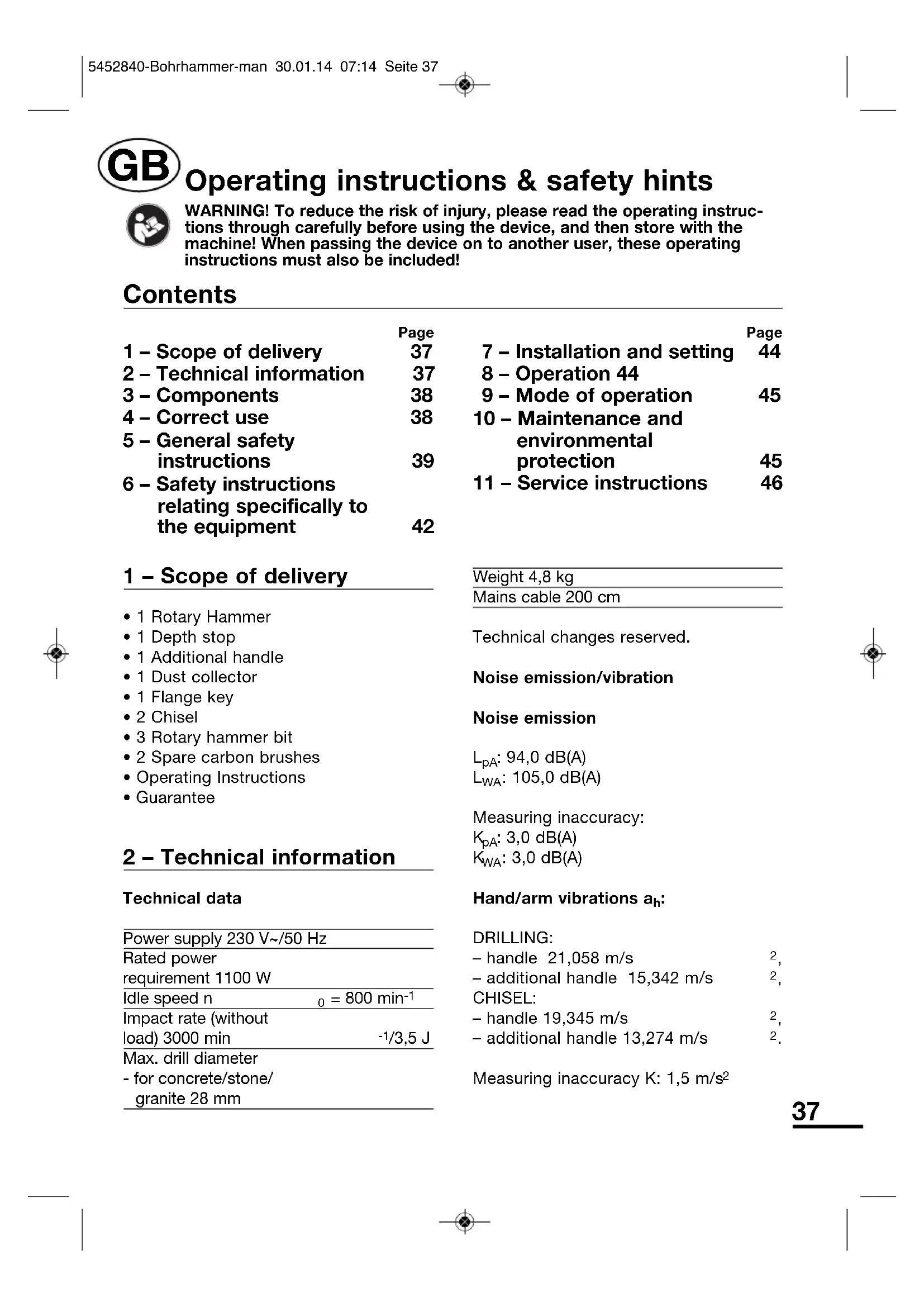 Measured values determined in accordance with EN 60745-1, EN 60745-2-6.