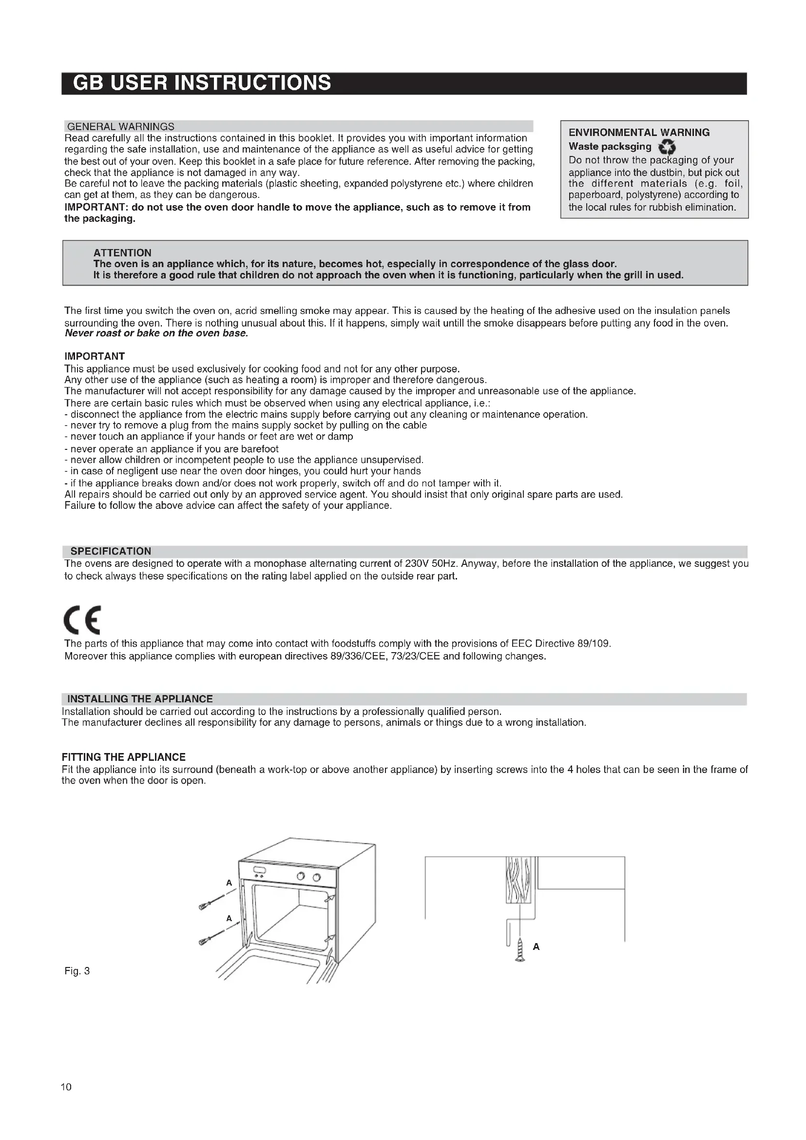 For the most efficient air circulation, the oven should be fitted according to the dimensions shown in fig.1-2 of page 2.