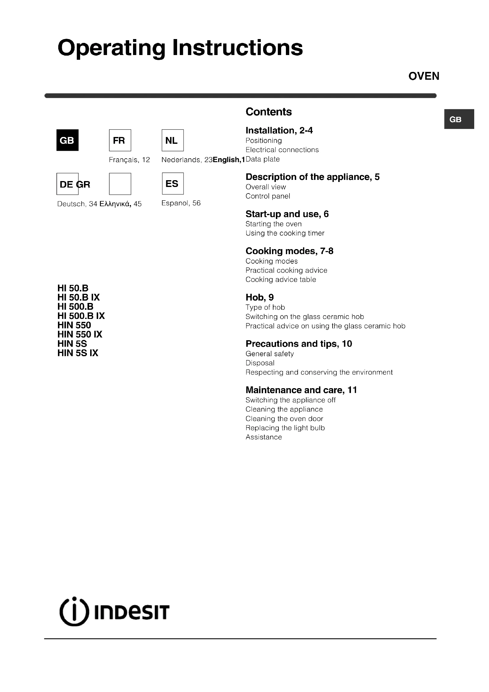 Download the instructions for your Oven in PDF format for free! Find your manual HIN 550 (BK) - INDESIT and take your electronic device back in hand. On this page are published all the documents necessary for the use of your device. HIN 550 (BK) by INDESIT.