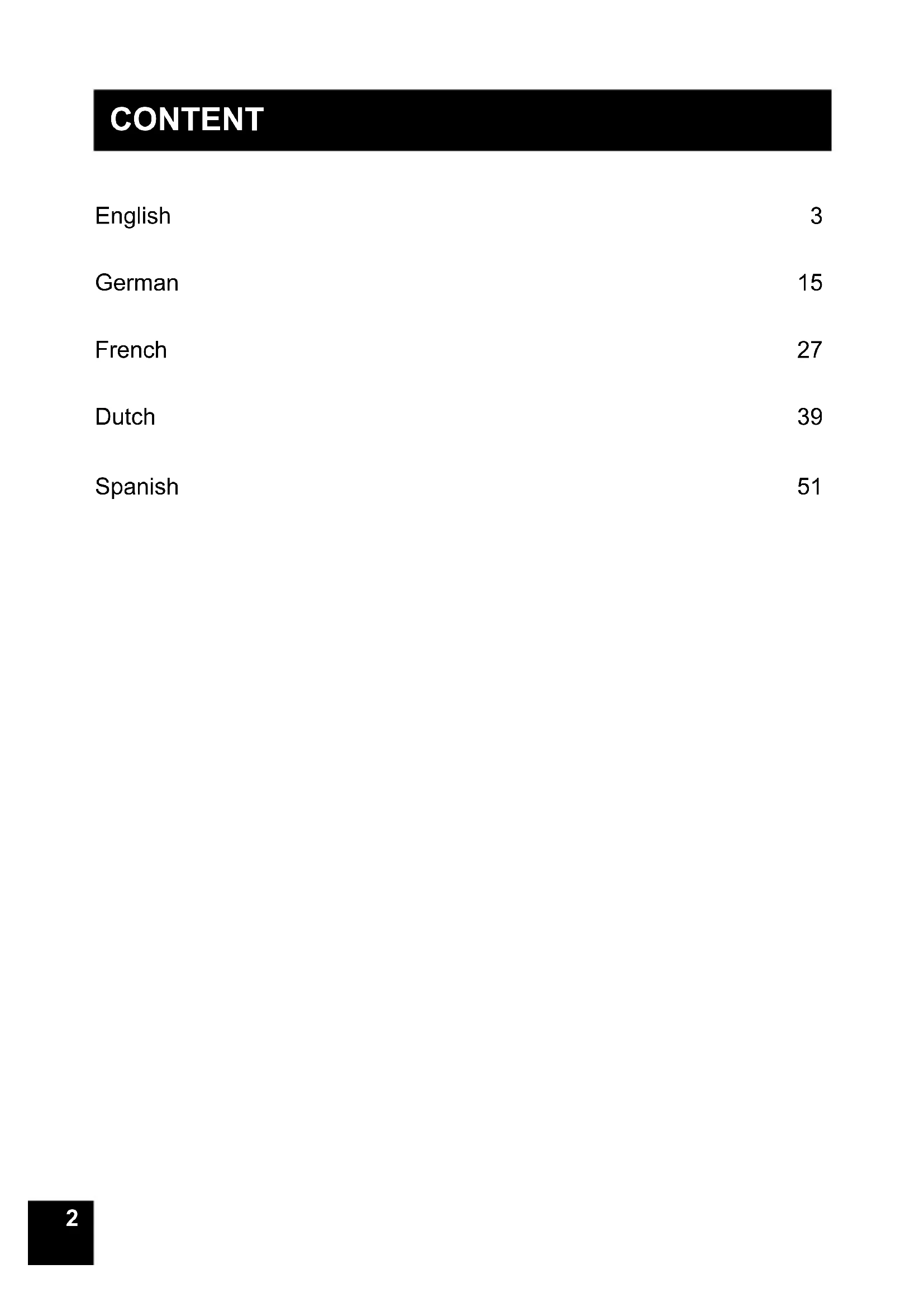 V2 | JULY 2017 USER MANUAL2 CONTENT English 3 German 15 French 27 Dutch 39 Spanish 5133 ENGLISH Thanks for purchasing the Flight turntable player from GPO. This retro-themed unit adds a touch of classic style to any room, while still providing amazing audio quality through the built in speakers. To get the most from your new turntable player, please read these instructions carefully before use, and keep them in a safe place for future reference.4 Unpacking This package contains: 1x Flight Turntable 1x Turntable Needle (tted) 1x Turntable Rubber Slip Mat (placed on the turntable) 1x DC Power Cable 1x RCA Cable 1x Manual Carefully remove all of the contents from the packaging. Make sure you retain and store this manual for future reference. When choosing a location for the unit, avoid inclines, direct sunlight or sources of heat and moisture. Keep all of the ventilation holes clear, and do not place any equipment on top of the unit as this can lead to damage. Only remove the stylus guard from the stylus assembly during use. Leaving the guard in place during storage will protect your stylus from damage.5 Features