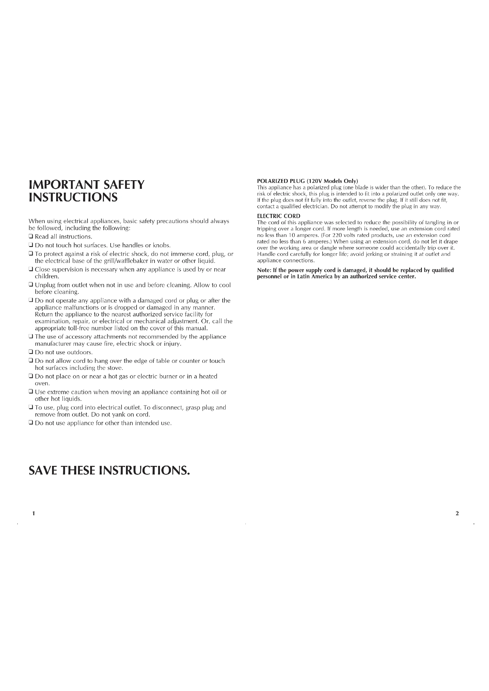 IMPORTANT SAFETY INSTRUCTIONS When using electrical appliances, basic safety precautions should always be followed, including the following: