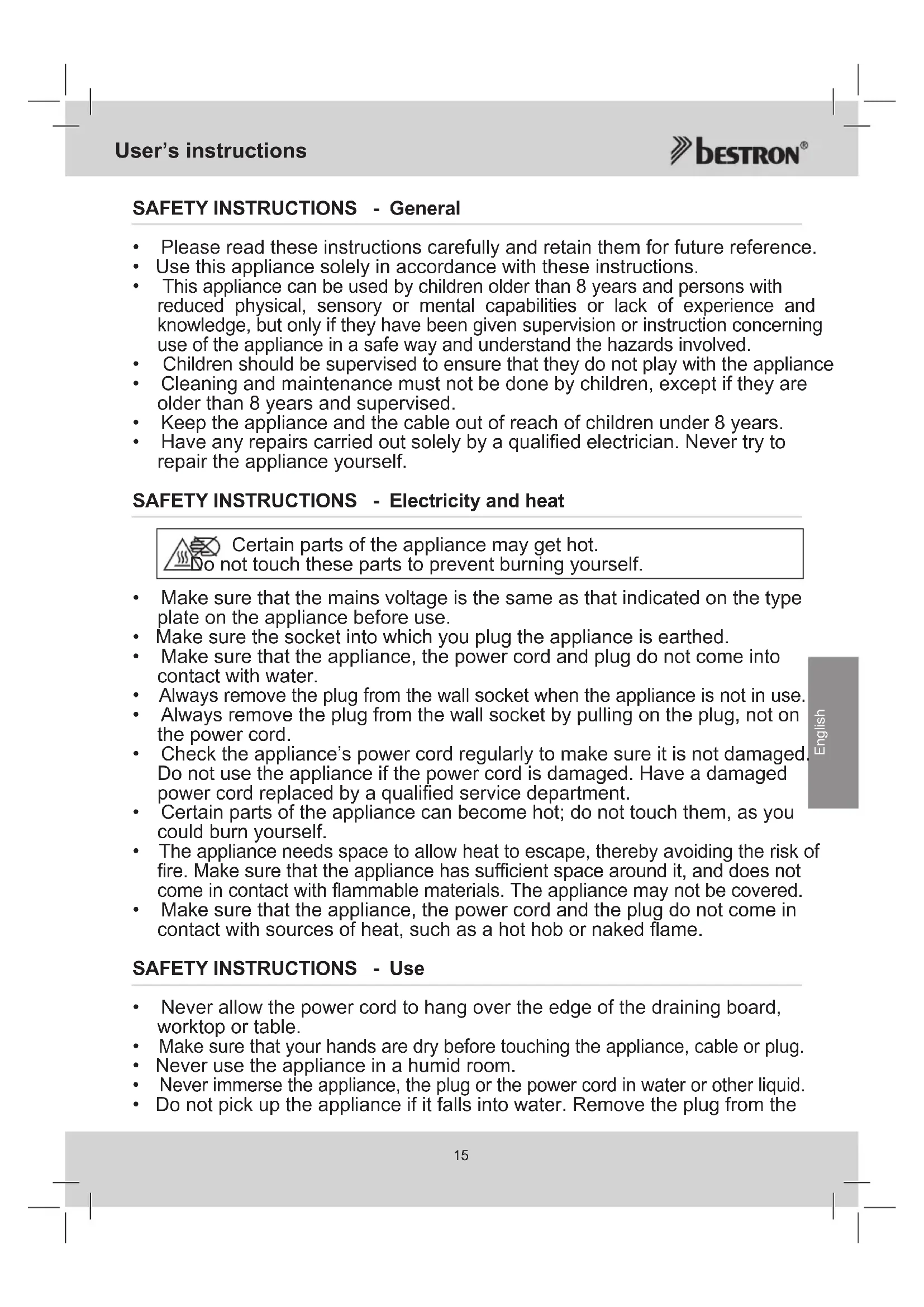 SERVICE If a fault should occur please contact the BESTRON service department: www.bestron.com/service