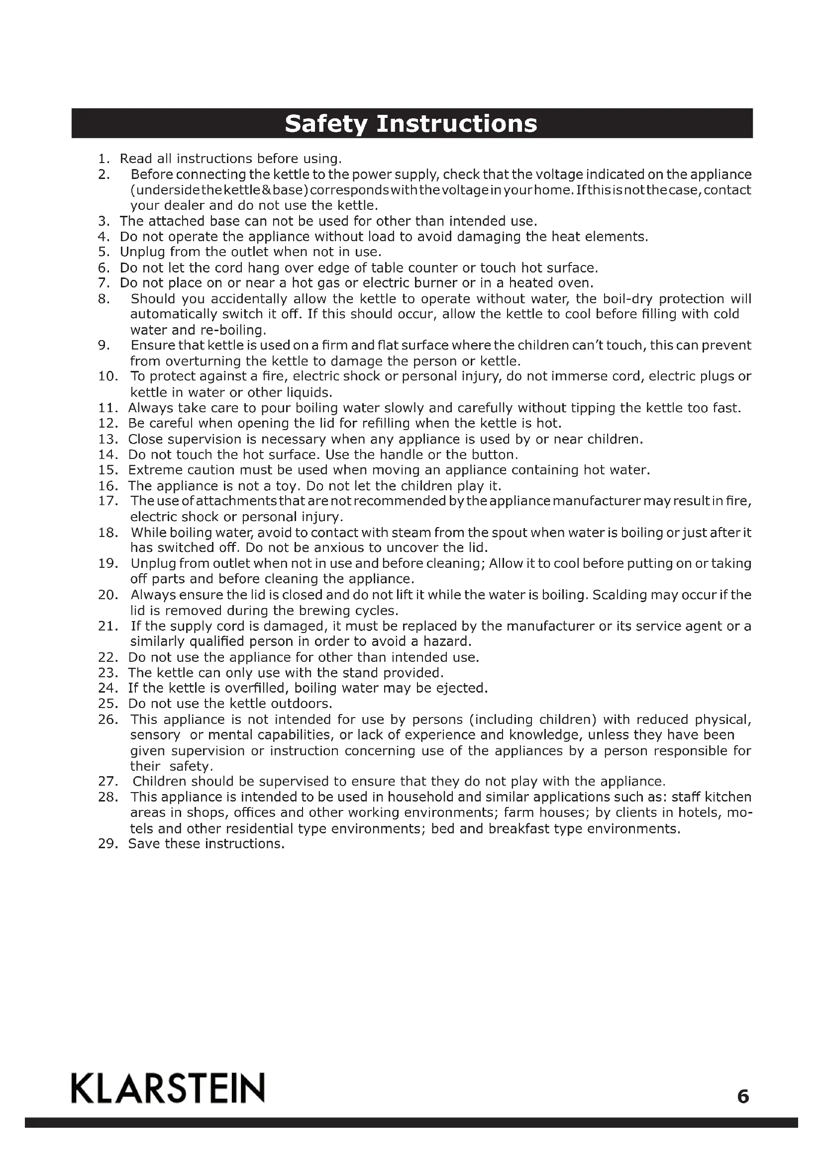 29. Save these instructions.Kettle