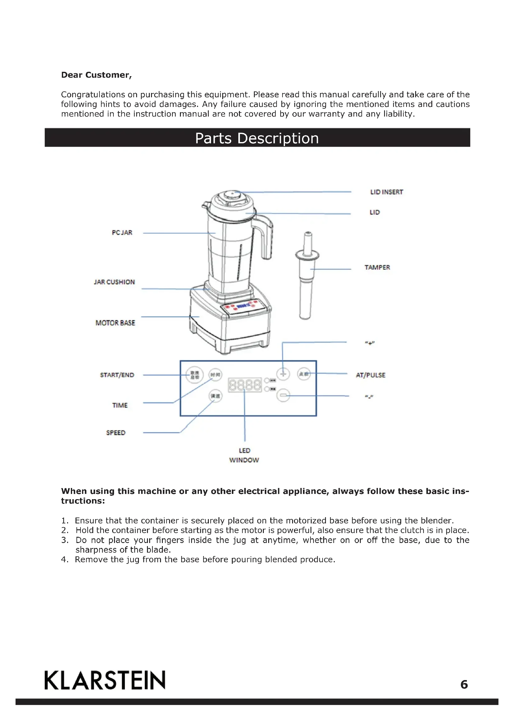 Download the instructions for your Food Processor in PDF format for free! Find your manual 10027054 - Klarstein and take your electronic device back in hand. On this page are published all the documents necessary for the use of your device. 10027054 by Klarstein.