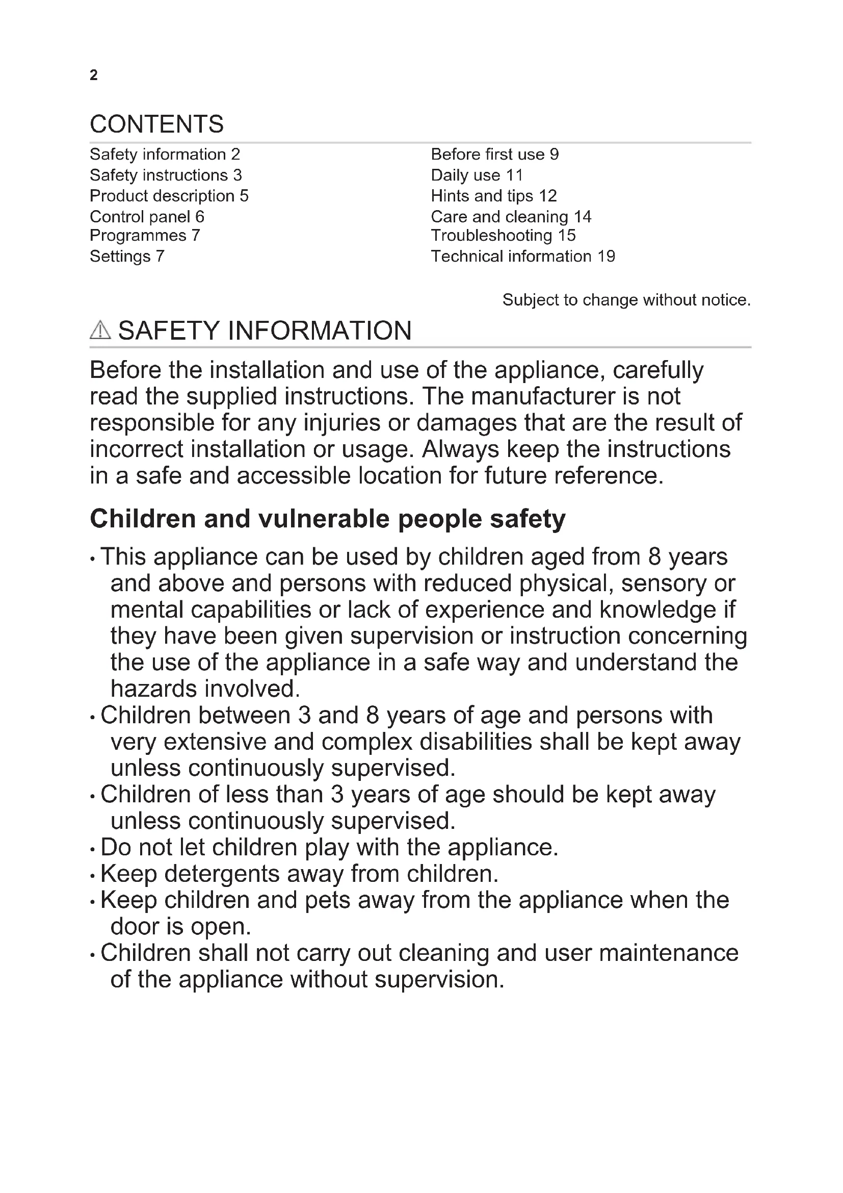 - Children shall not carry out cleaning and user maintenance of the appliance without supervision. 2General Safety