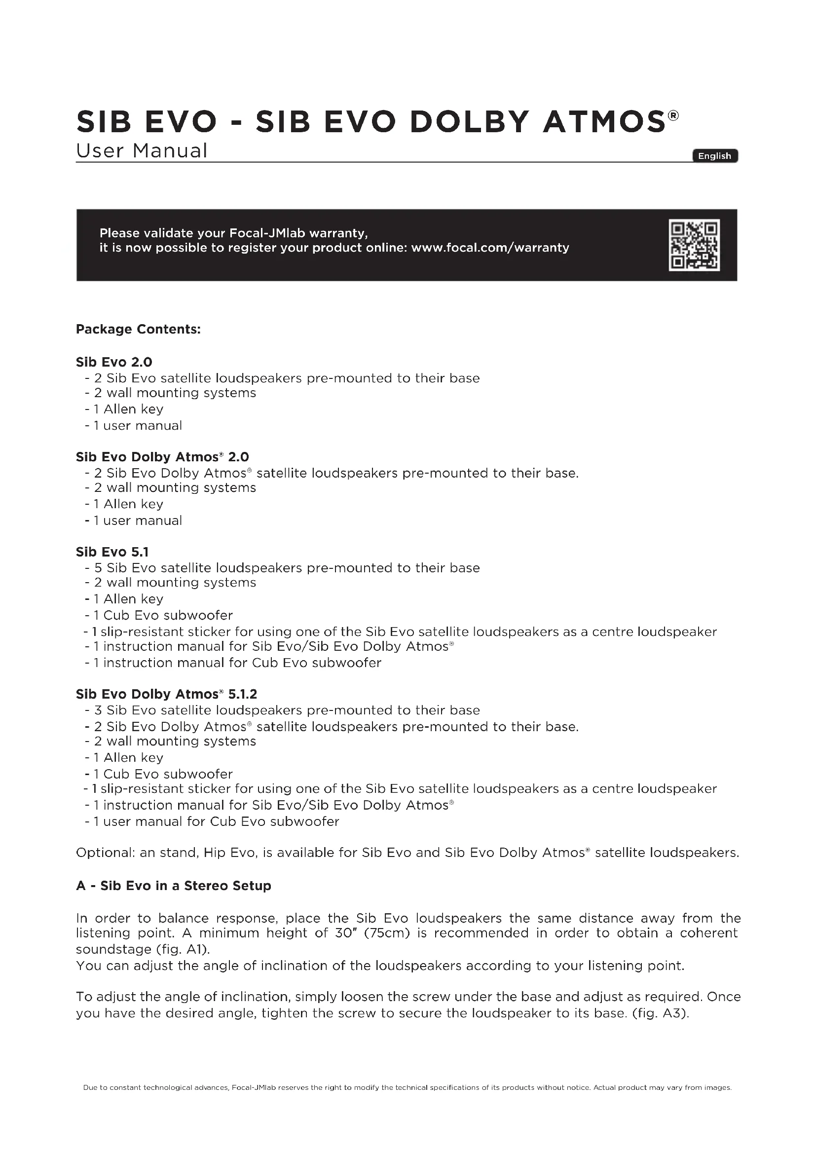 Download the instructions for your Speaker in PDF format for free! Find your manual Sib Evo 5.1.2 - FOCAL and take your electronic device back in hand. On this page are published all the documents necessary for the use of your device. Sib Evo 5.1.2 by FOCAL.