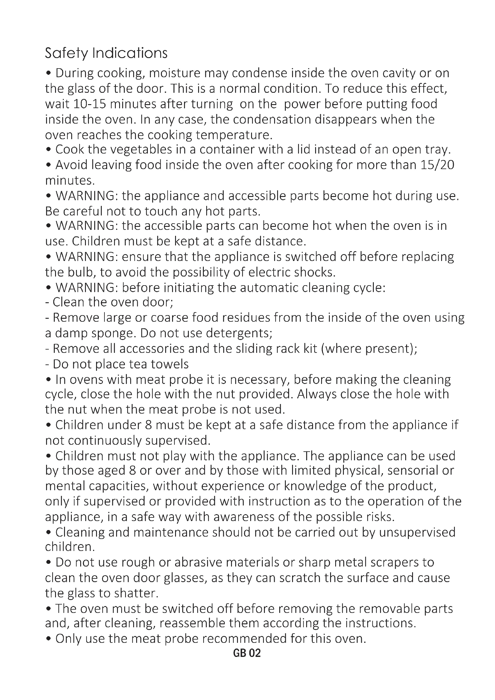 - Avoid leaving food inside the oven after cooking for more than 15/20 minutes.