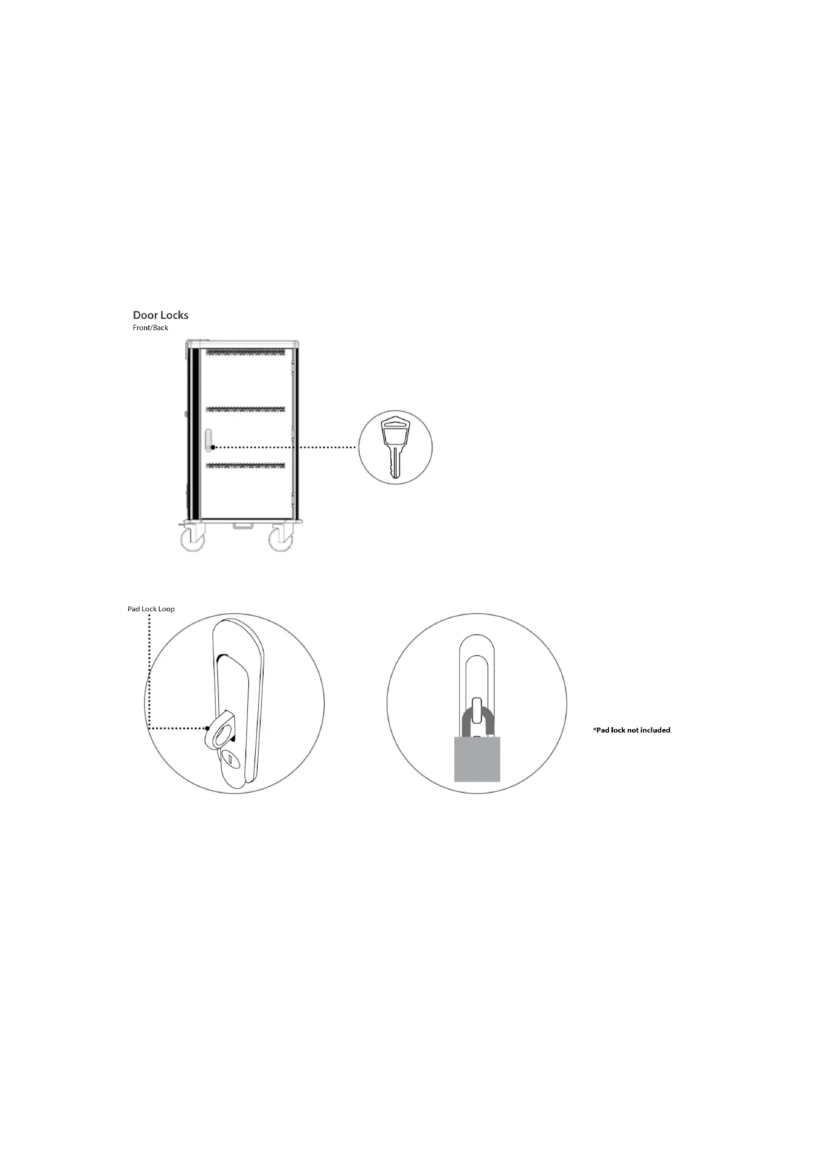 - Keys AC Power Cord Keys CHGCT30Cart Diagram Front Handle Service Door Power Cable Holder LED Charging Indicator 5" Caster 5" Locking Caster Pad Lock Loop Power Switch Power Input Rubber Bumpers (4 Corners) Power Supply Holders Built-in PDUs Locking Point *Security Lock Not included Device Slots Power Cord Pass ThroughRemove from pallet