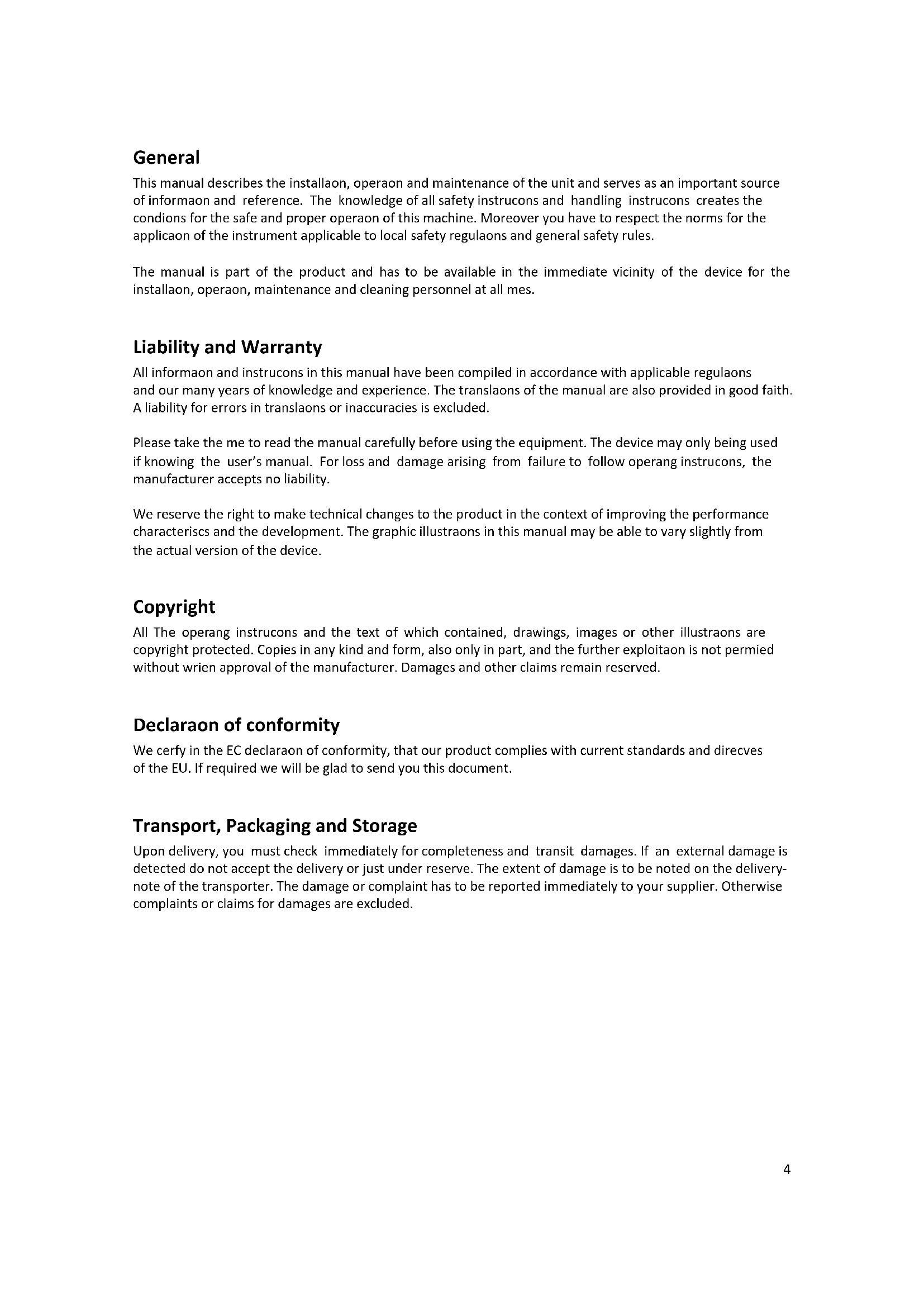 Operation Please follow the steps below before first usage of your crêpe maker: Before the first use clean the baking plate with an into food fat soaked cloth to remove the industrial protective-grease. Connect the equipment into a grounded single outlet. The unit must be grounded in a sufficient manner. Turn on the unit by pressing the POWER-switch. The power indicator light (red) lights up. Pre-heat the device at 200°C and leave it on for about 1/2 hour. Then cool down the unit. Then heat up the device at 300°C and leave it on for about 1/2 hour to eliminate the production residues. Then cool down the unit. Take the unit into operation. WARNING! Risk of burns! The unit will become very hot during operation! Do not touch the hot surfaces of the device. Use the handle of the device. Operation after pre-heating: Preheat the device at the highest stage (300 ° C) for about 15 minutes. Set the desired temperature. The temperature range of the crêpe-iron is at 50° -300°C. The temperature indicator light (green) goes on. When the set temperature is reached, the temperature indicator light goes off. If the temperature on the baking plate is lit, the temperature indicator light goes on and the heating element heats up on the set temperature. Give the dough onto the baking plate and spread it with a batter spreader. Pay attention to the dosage of the dough, otherwise the excess dough flows down at the sides. In order to spread the dough smoothly on the baking sheet, place the batter spreader always in slightly tempered water. In order to turn the crêpes on the plate, use a suitable turner. If you no longer use the device, disconnect the unit from the wall outlet. For a new usage, please follow all the steps that are described under "operation after pre-heating"8