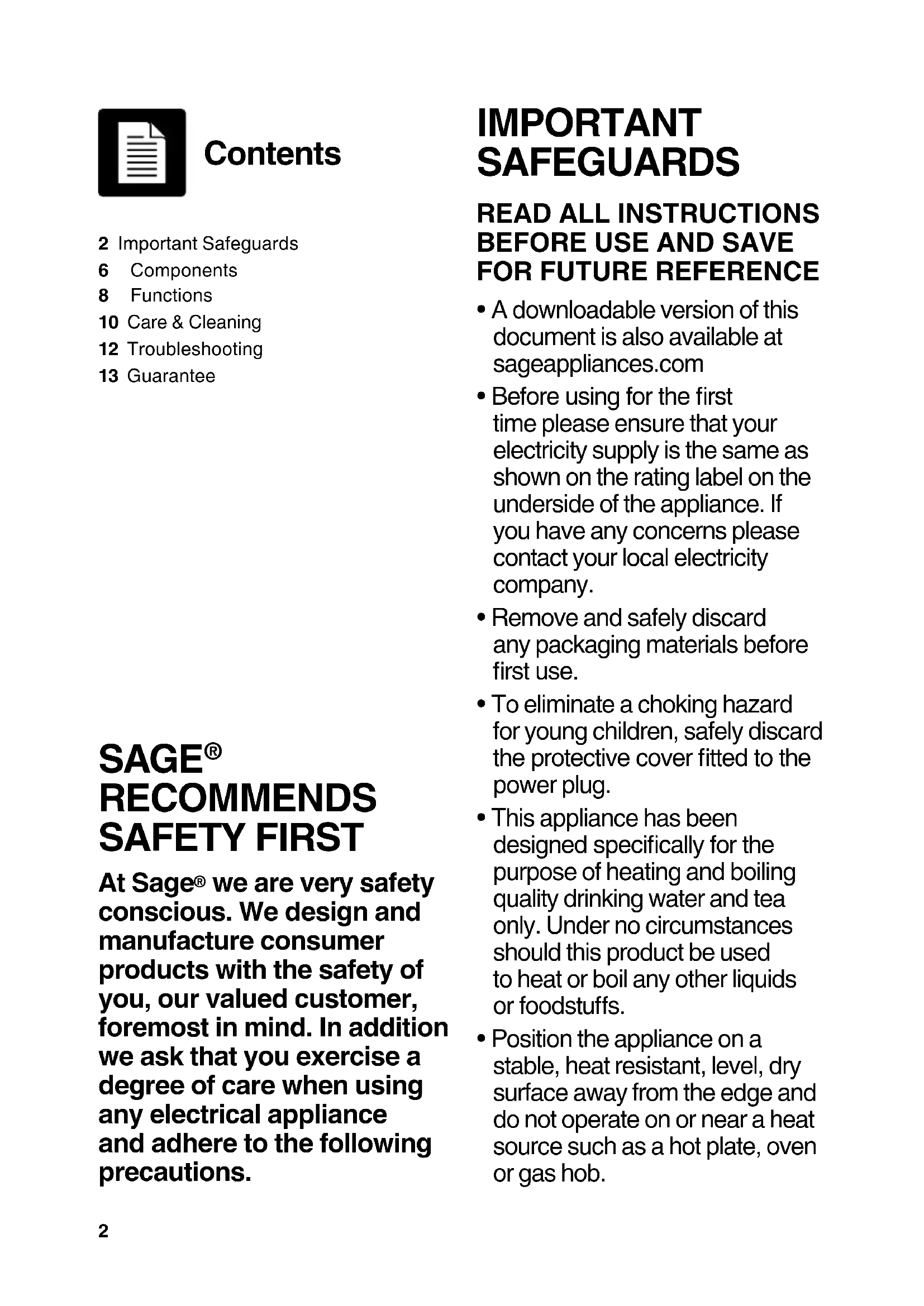 - A downloadable version of this document is also available at sageappliances.com