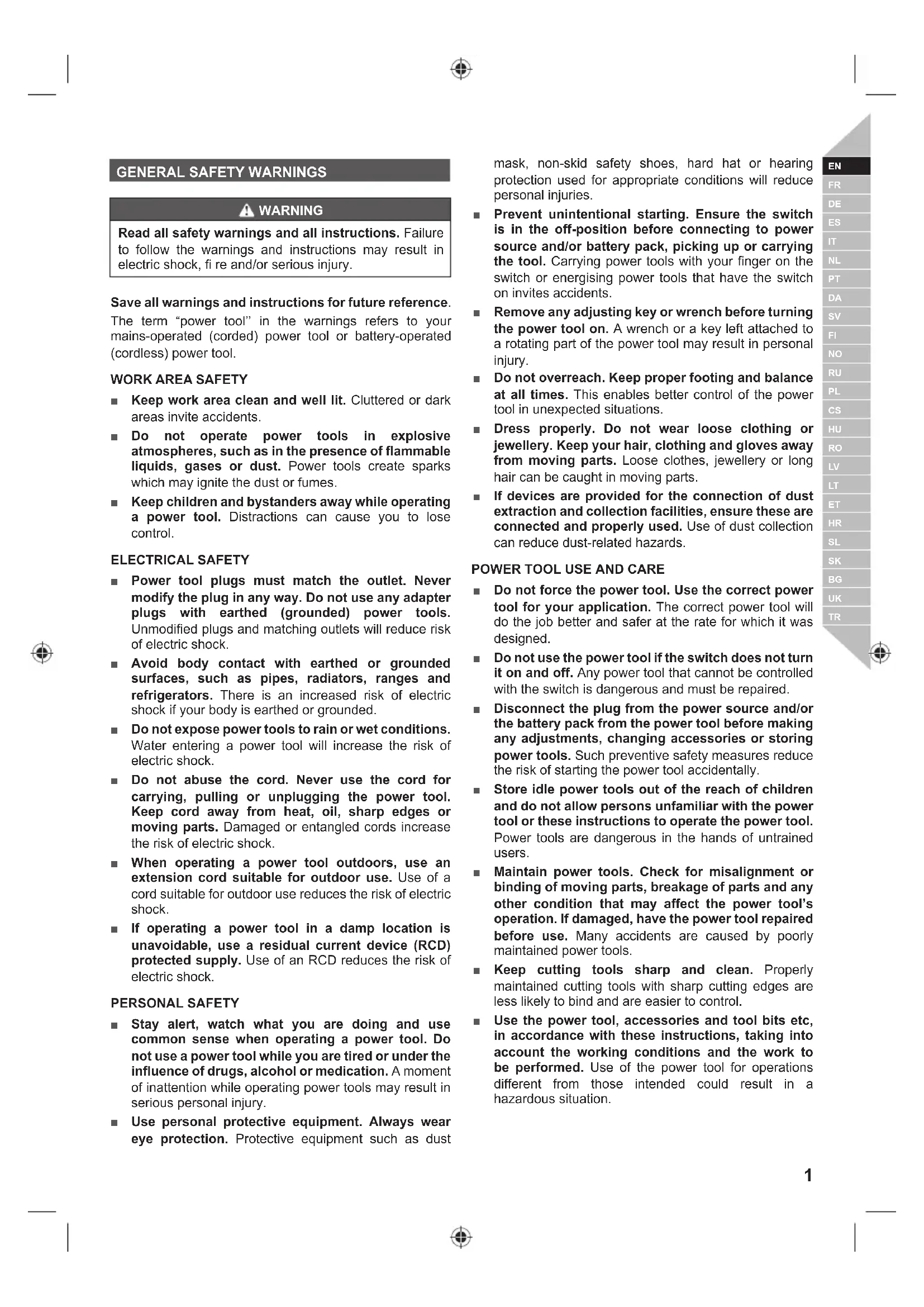 WARNING Read all safety warnings and all instructions. Failure to follow the warnings and instructions may result in electric shock, fi re and/or serious injury. Save all warnings and instructions for future reference. The term “power tool’’ in the warnings refers to your mains-operated (corded) power tool or battery-operated (cordless) power tool.