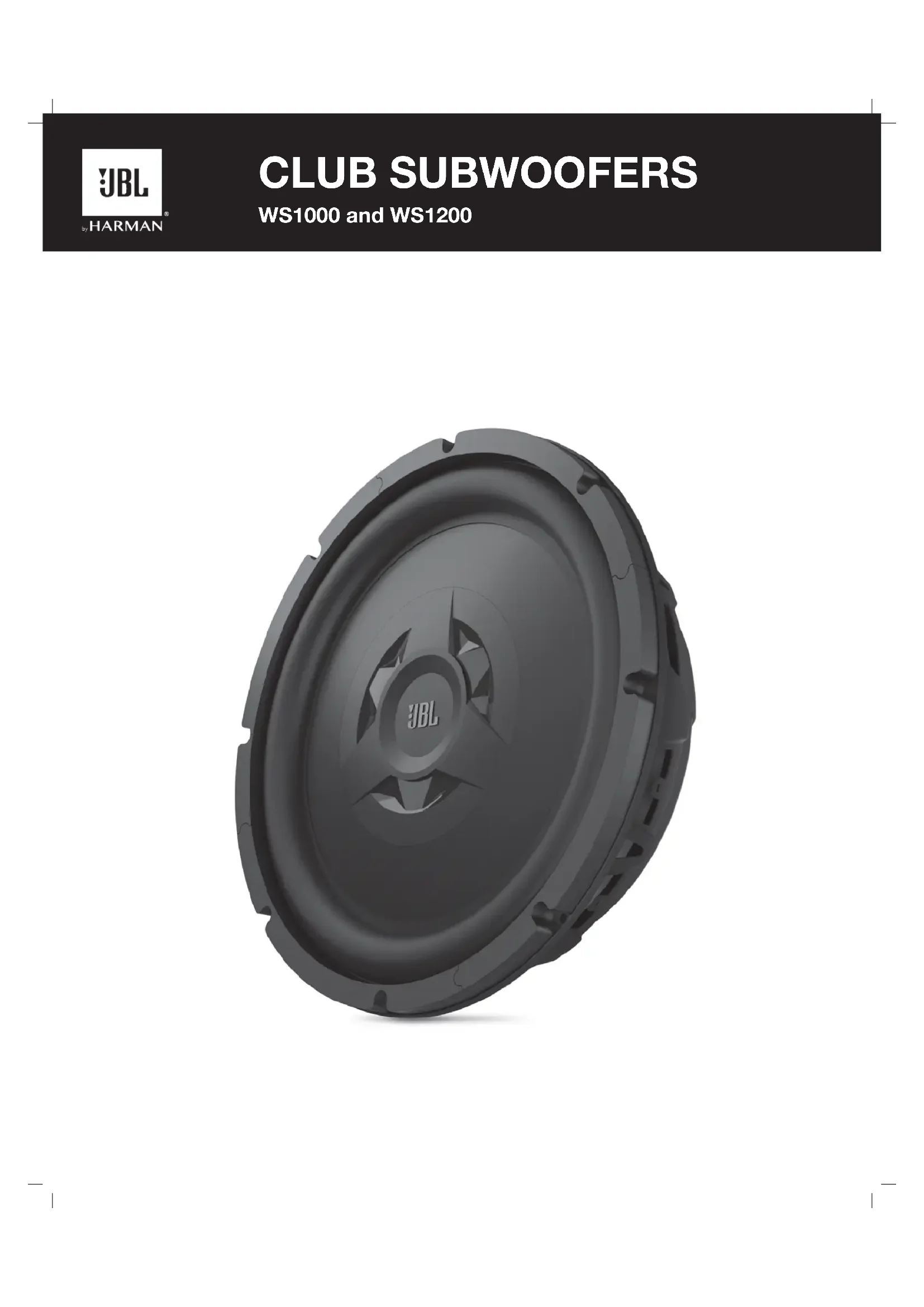 CLUB SUBWOOFERS WS1000 and WS1200THANKYOU for choosing an JBL Club WS1000 or Club WS1200 subwoofer. These Club subwoofers are designed to suit a broad range of car audio applications and can be used in a wide variety of enclosure types to produce extended, powerful bass in a limited amount of vehicle space. To get the most performance from your new subwoofer, it is strongly recommended that you have a qualified professional install your WS1000 or WS1200 subwoofer. Although this manual does provide general instructions about installing these Club Series subwoofers, it does not include enclosure construction details or exact installation methods for any particular vehicle. If you do not feel that you have the necessary experience, do not attempt the installation yourself, but instead ask your authorized JBL dealer about professional installation options. Remember to keep your sales receipt in a safe place, along with this manual, so that both are available for future Club. BOX CONTENTS (1) WS1000 or WS1200 subwoofer (1) Owner’s manual (1) Technical data sheet WARNING Playing loud music in a vehicle can hinder your ability to hear traffic and permanently damage your hearing. The maximum volume levels achievable by JBL speakers when combined with high-power amplification may exceed safe levels for extended listening. Using low volume levels is recommended when driving. JBL Systems accepts no liability for hearing loss, bodily injury, or property damage as a result of use or misuse of this product. the subwoofer cone. The result is a stiffer suspension when compared to the subwoofer operating in free air. This means that the subwoofer’s cone will be harder to move at low frequencies, a condition which protects the subwoofer from physical overexcursion, but requires more power than other designs to achieve a given acoustic output. See accompanying data sheet for specific enclosure dimension requirements. SEALED-ENCLOSURE PERFORMANCE ADVANTAGES