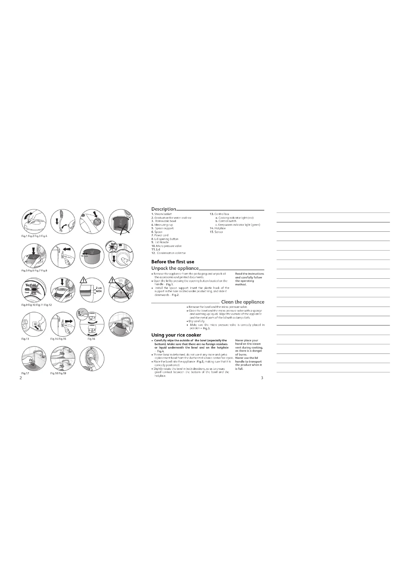 RICE_COOKER_EASY-COOK_NC00120533_Mise en page 1 09/10/13 09:34 Page2• Check that the condensation collector is correctly placed in position, if not, please install it by pushing firmly into the groove – Fig.6.