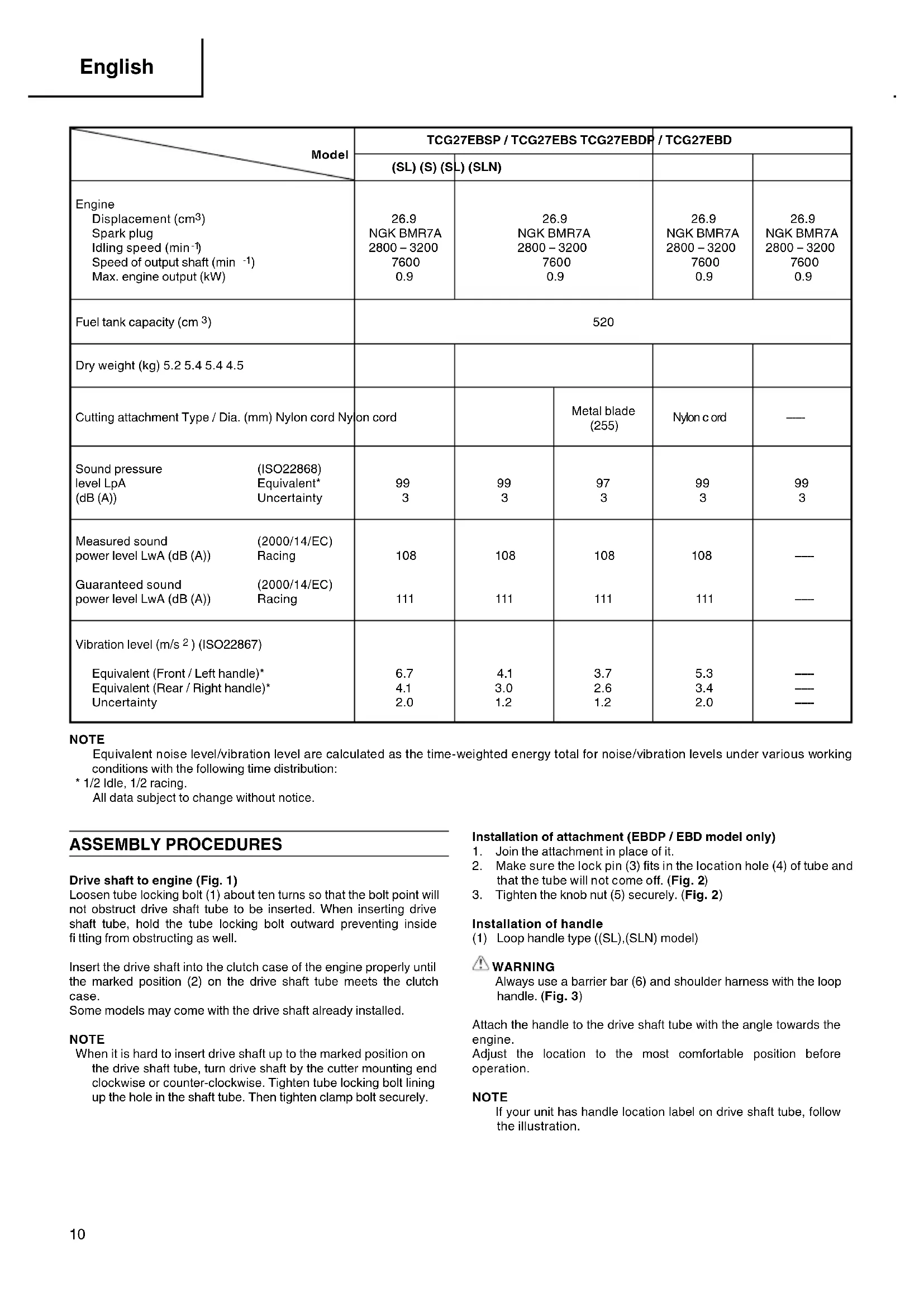 - 1/2 Idle, 1/2 racing. All data subject to change without notice. Installation of attachment (EBDP / EBD model only)