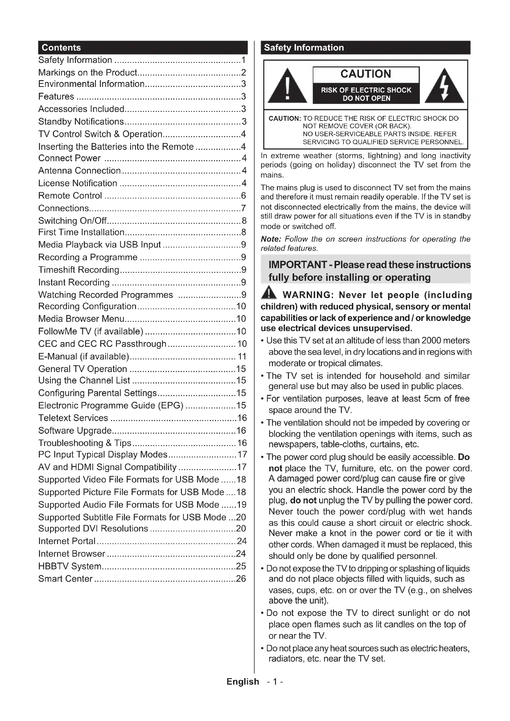- Use this TV set at an altitude of less than 2000 meters above the sea level, in dry locations and in regions with moderate or tropical climates.