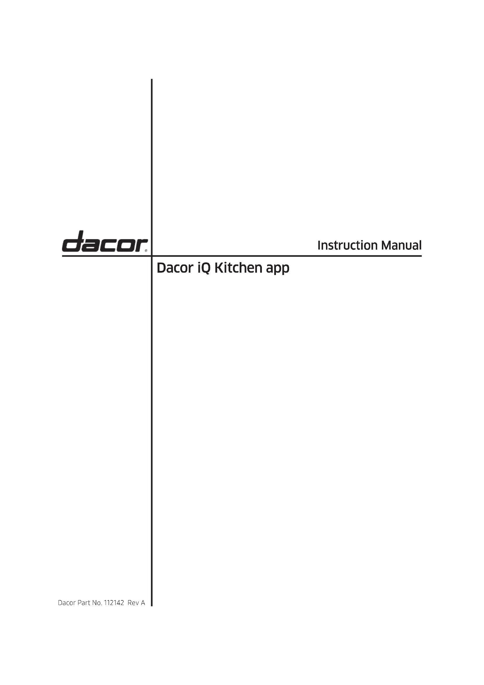 Instruction Manual Dacor iQ Kitchen app Dacor Part No. 112142 Rev AEnglish2 Dacor iQ Kitchen Dacor iQ Kitchen This manual helps you take full advantage of the Smart features of your new oven or cooktop. It guides you through installation of the Dacor iQ Kitchen App, explains how to connect th e app to your oven or cooktop, and covers the apps main features. For details, visit www.dacor.com Downloading and Installing the App