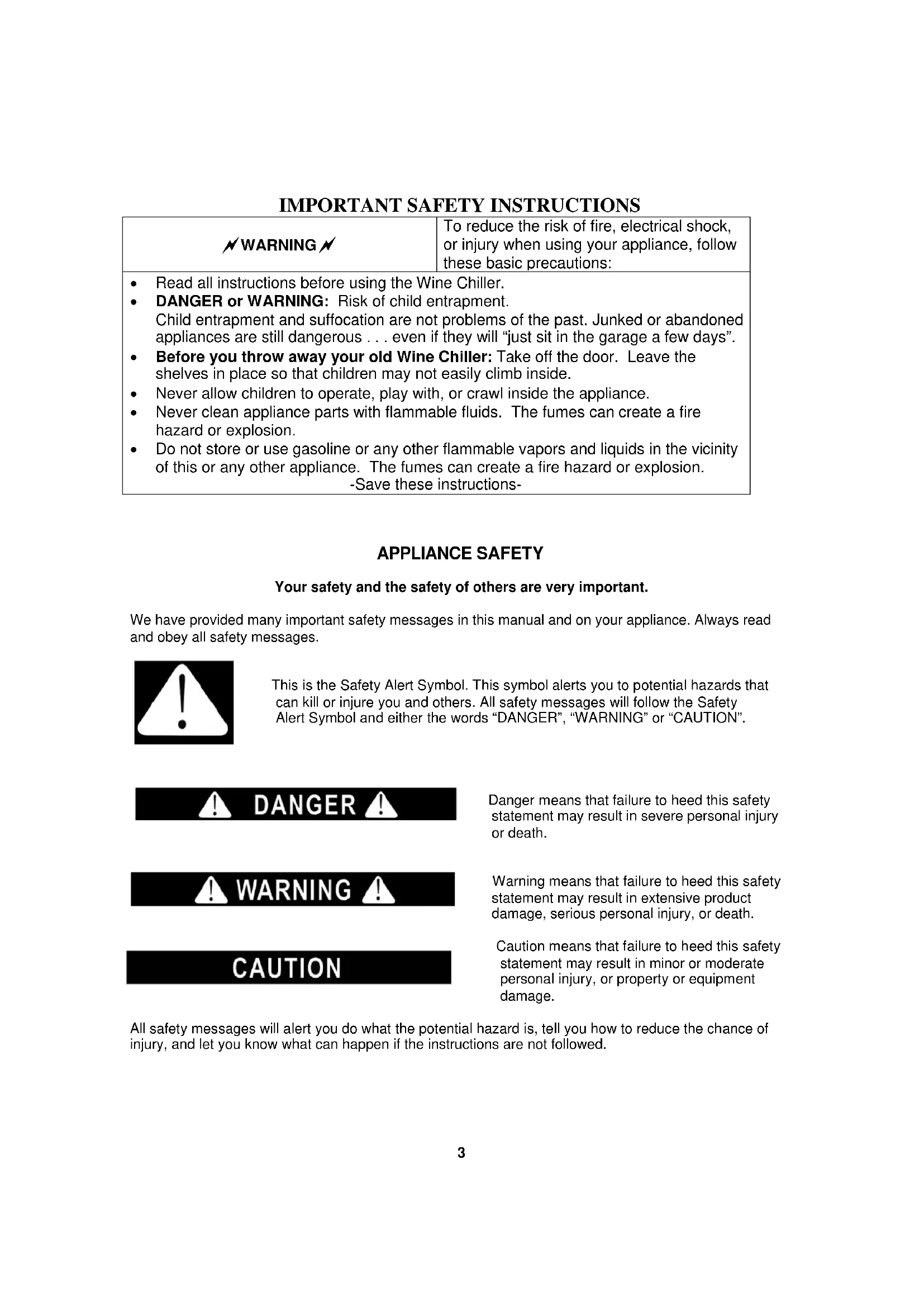 APPLIANCE SAFETY Your safety and the safety of others are very important. We have provided many important safety messages in this manual and on your appliance. Always read and obey all safety messages.