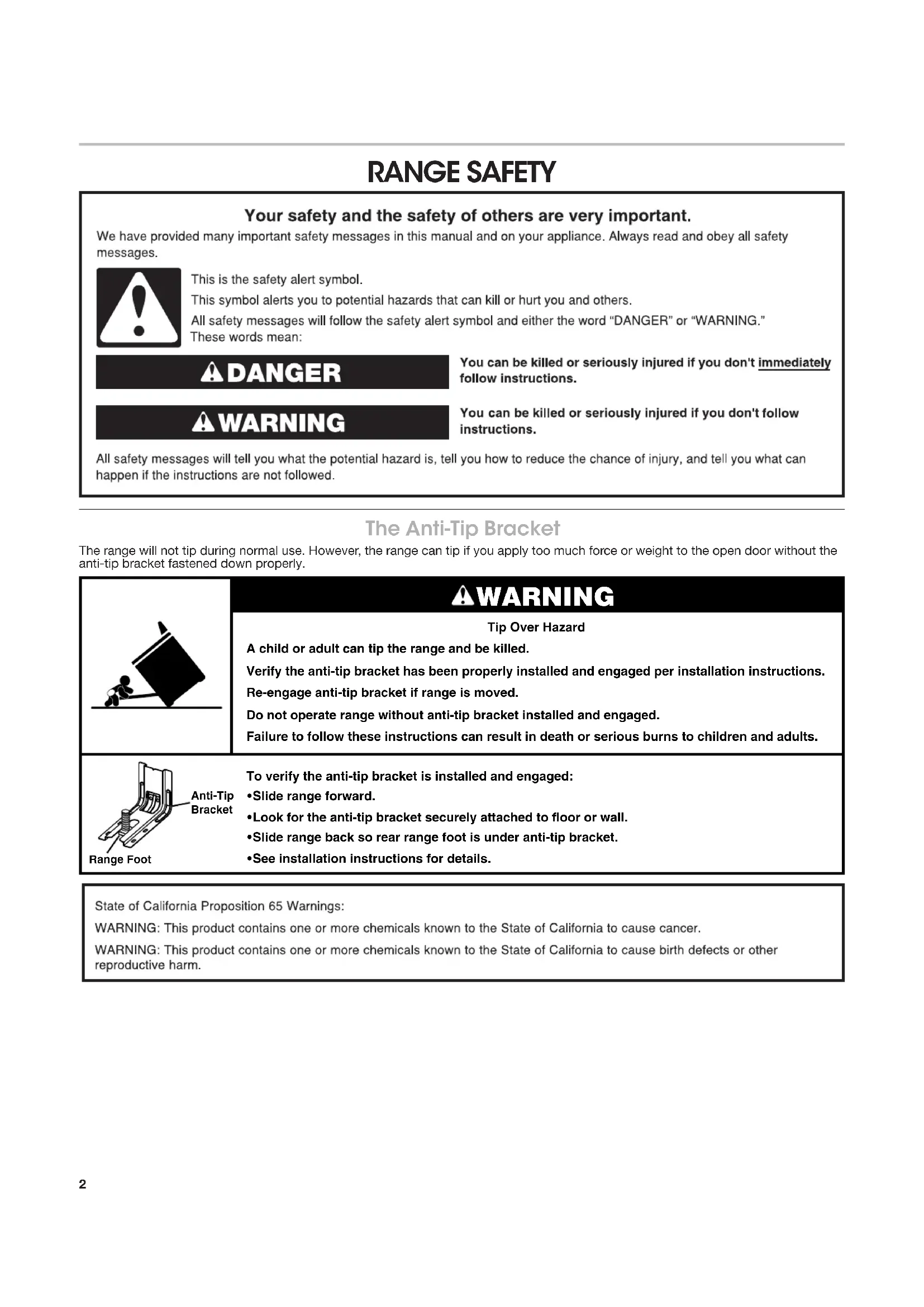 - See installation instructions for details. WARNING Anti-Tip Bracket Range Foot3