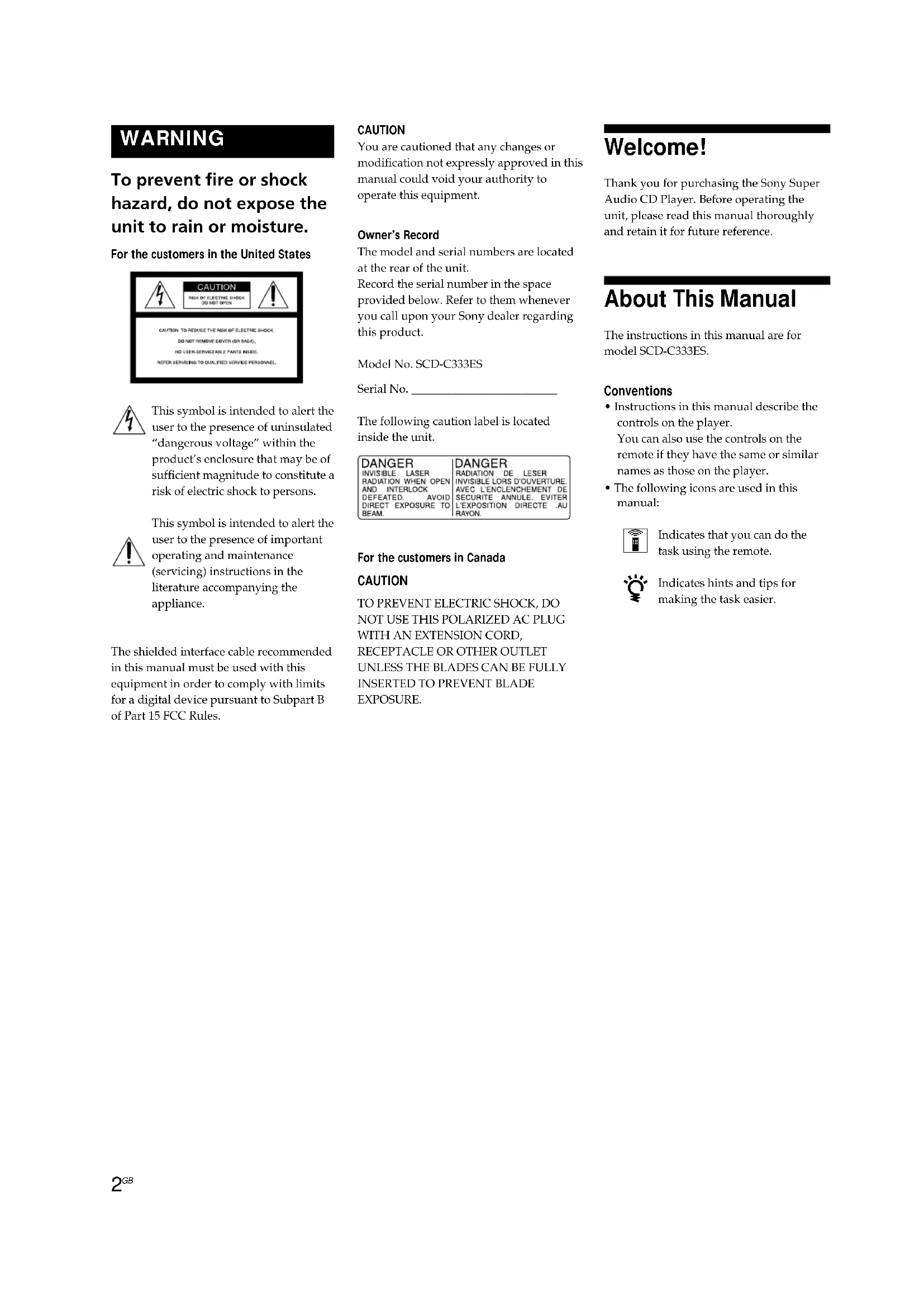 Download the instructions for your Cd player/recorder in PDF format for free! Find your manual SCDC333ES - SONY and take your electronic device back in hand. On this page are published all the documents necessary for the use of your device. SCDC333ES by SONY.