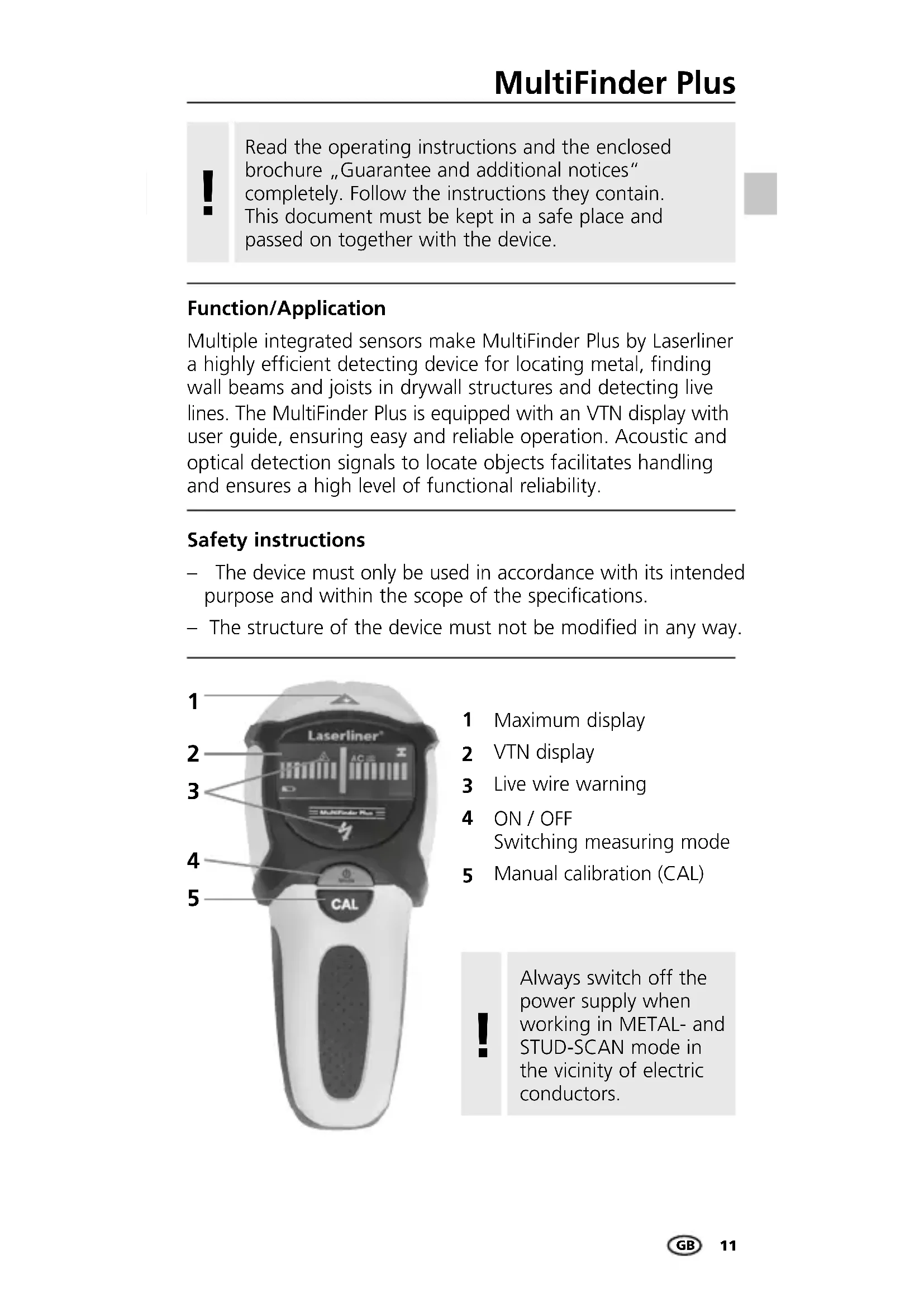 MultiFinder Plus - Hand tool Laserliner - Free user manual and instructions