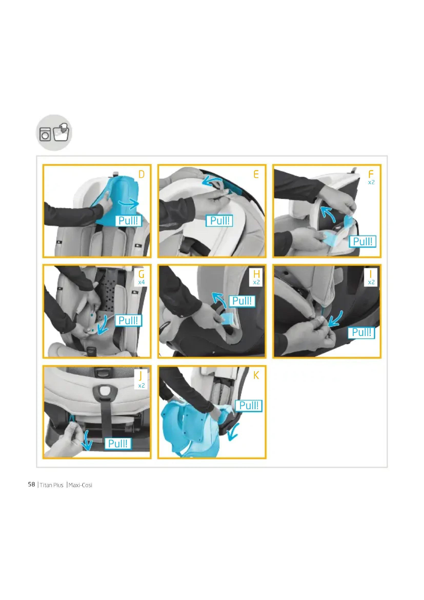 - The cover and crotch pad can be removed for washing. If the cover needs to be replaced at any time, only use ocial Maxi-Cosi cover because it constitutes an integral part of the restraint performance.