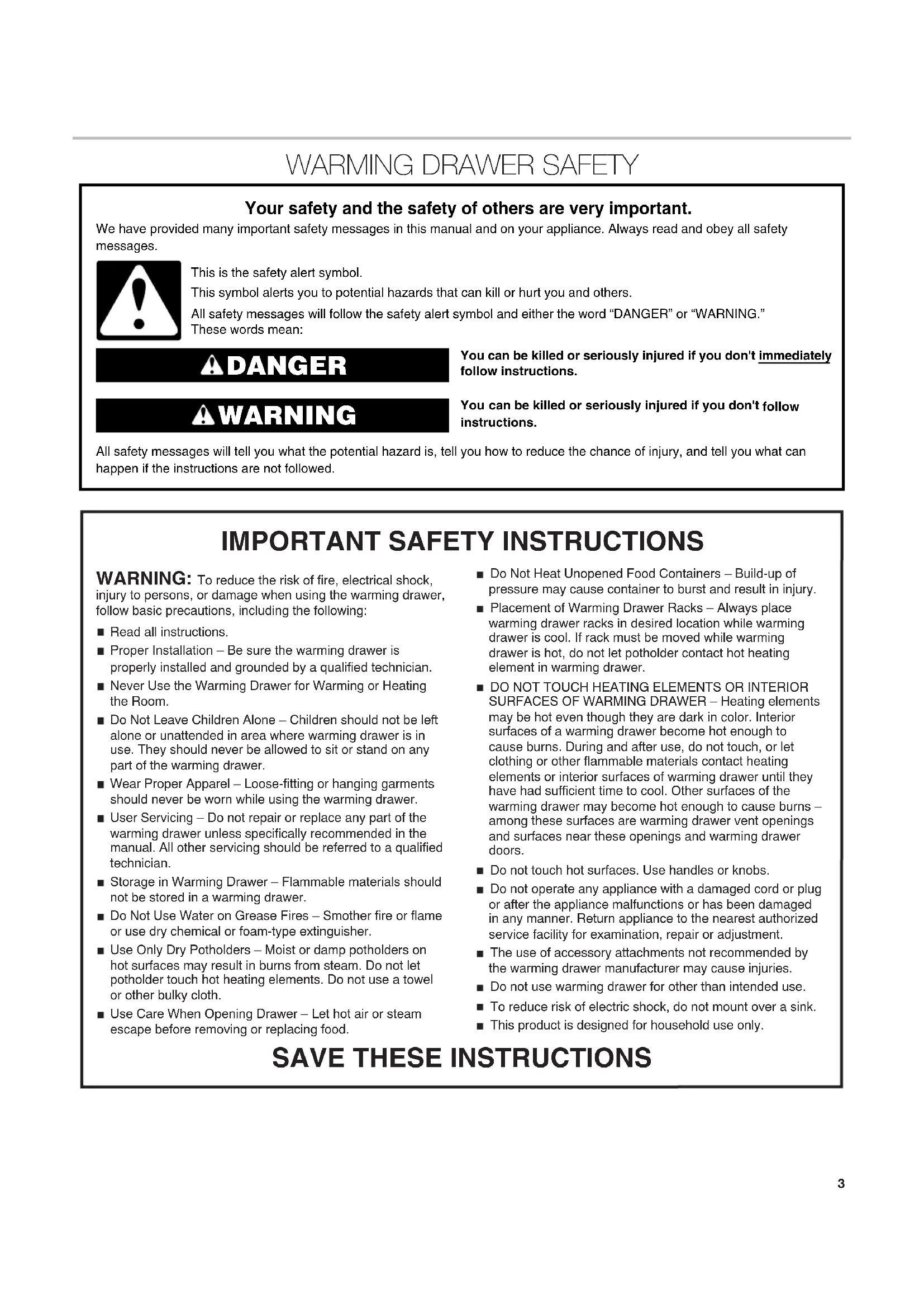 WARMING DRAWER SAFETY