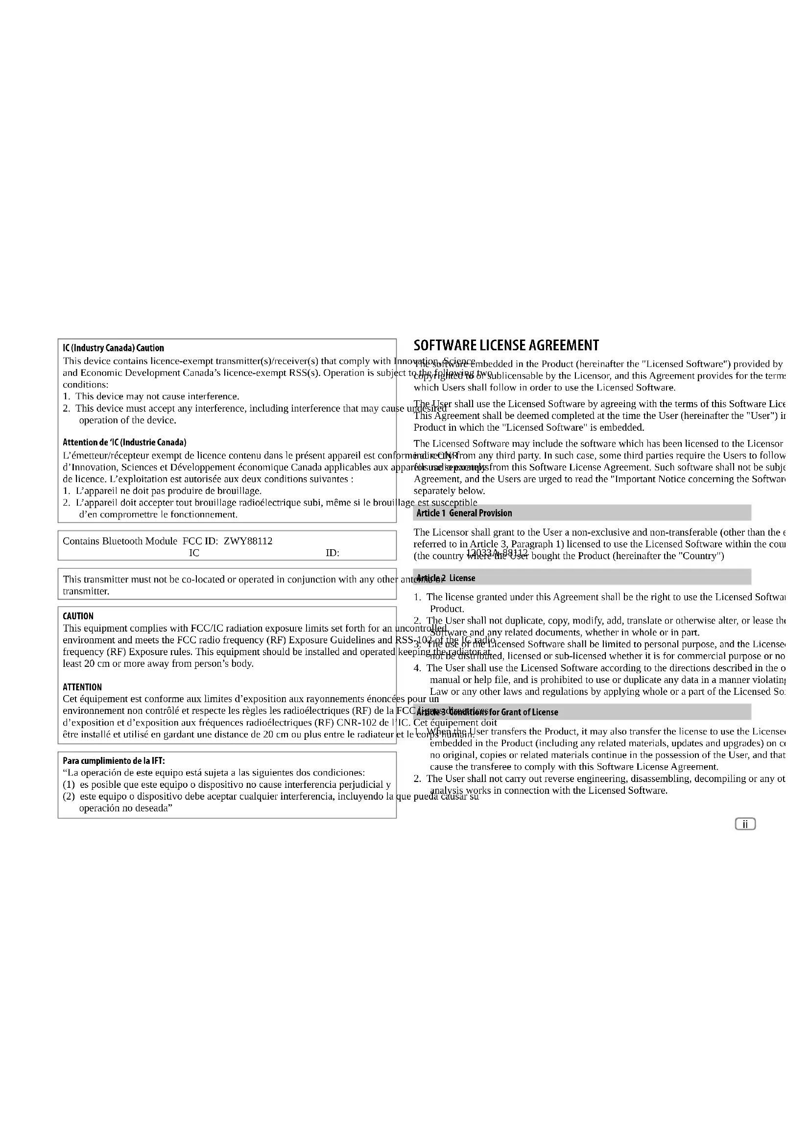 The software embedded in the Product (hereinafter the "Licensed Software") provided by Licensor is copyrighted to or sublicensable by the Licensor, and this Agreement provides for the terms and conditions which Users shall follow in order to use the Licensed Software. The User shall use the Licensed Software by agreeing with the terms of this Software License Agreement. This Agreement shall be deemed completed at the time the User (hereinafter the "User") initially used the Product in which the "Licensed Software" is embedded. The Licensed Software may include the software which has been licensed to the Licensor directly or indirectly from any third party. In such case, some third parties require the Users to follow their conditions for use separately from this Software License Agreement. Such software shall not be subject to this Agreement, and the Users are urged to read the "Important Notice concerning the Software" to be provided separately below. Article 1 General Provision The Licensor shall grant to the User a non-exclusive and non-transferable (other than the exceptional case referred to in Article 3, Paragraph 1) licensed to use the Licensed Software within the country of the User. (the country where the User bought the Product (hereinafter the "Country") Article 2 License