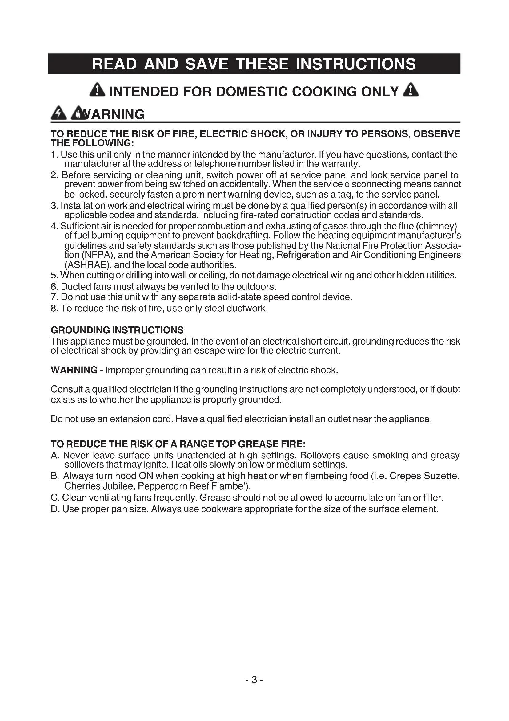 - EXTERNAL BLOWER MODELS ONLY: To reduce risk of fire and electric shock, install this range hood only with Best Exterior Blower Models EB6, EB9, EB12 or EB15 or Best In-Line Blower Models ILB3, ILB6, ILB9 or ILB11. Other blowers cannot be substituted. (Blower sold separately)