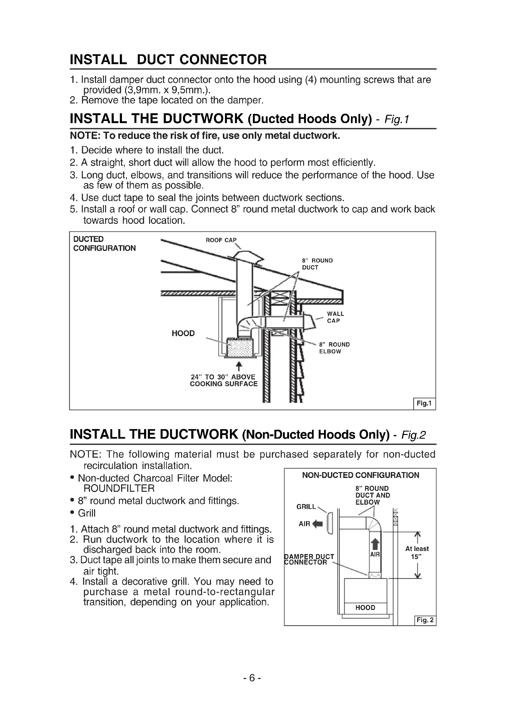 Fig.1Fig. 2 NON-DUCTED CONFIGURATION INSTALL THE DUCTWORK (Non-Ducted Hoods Only) - Fig.2 NOTE: The following material must be purchased separately for non-ducted recirculation installation.