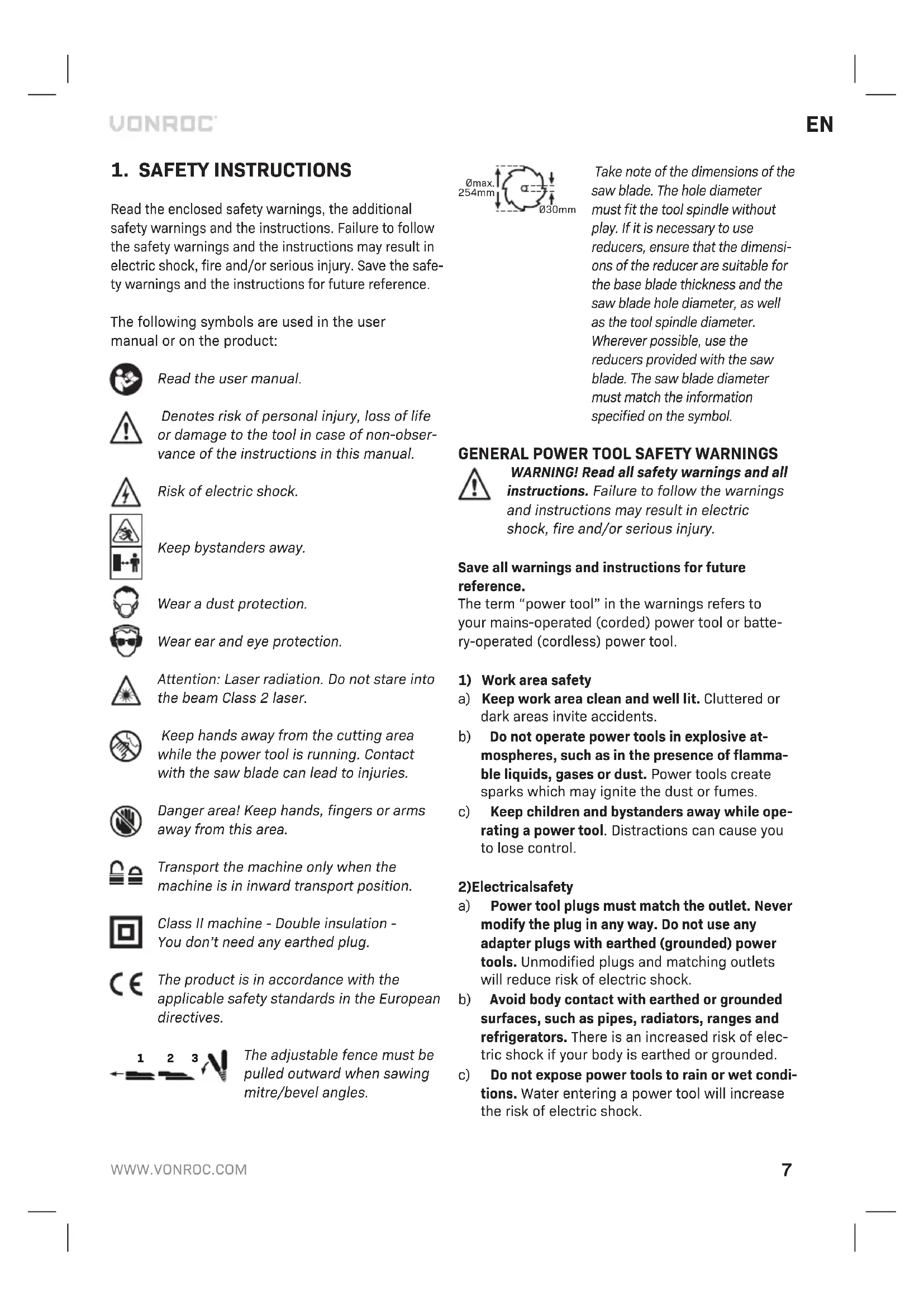 Download the instructions for your Saw in PDF format for free! Find your manual MS502AC - Vonroc and take your electronic device back in hand. On this page are published all the documents necessary for the use of your device. MS502AC by Vonroc.