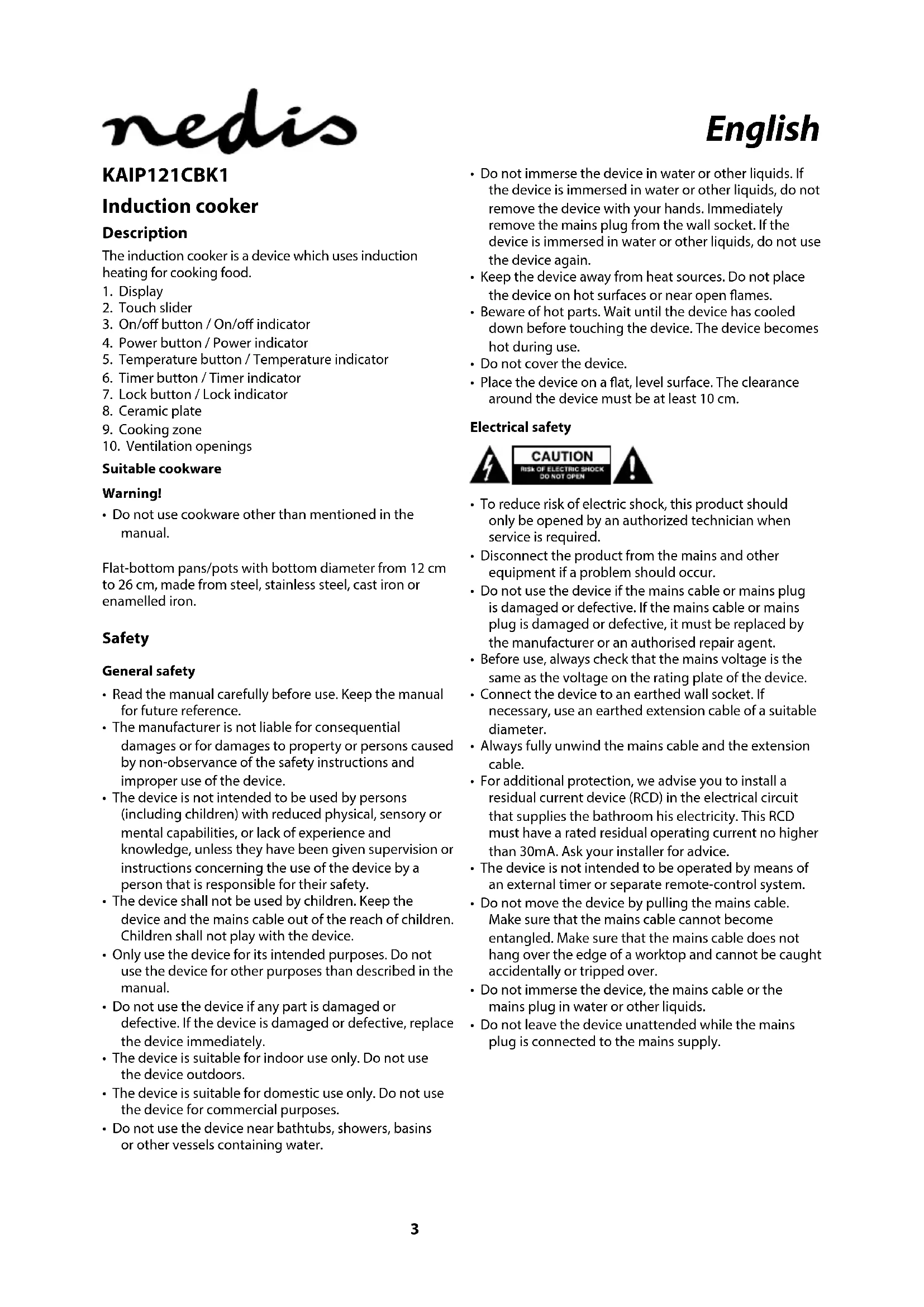KAIP121CBK1 - Cooker NEDIS - Free user manual and instructions