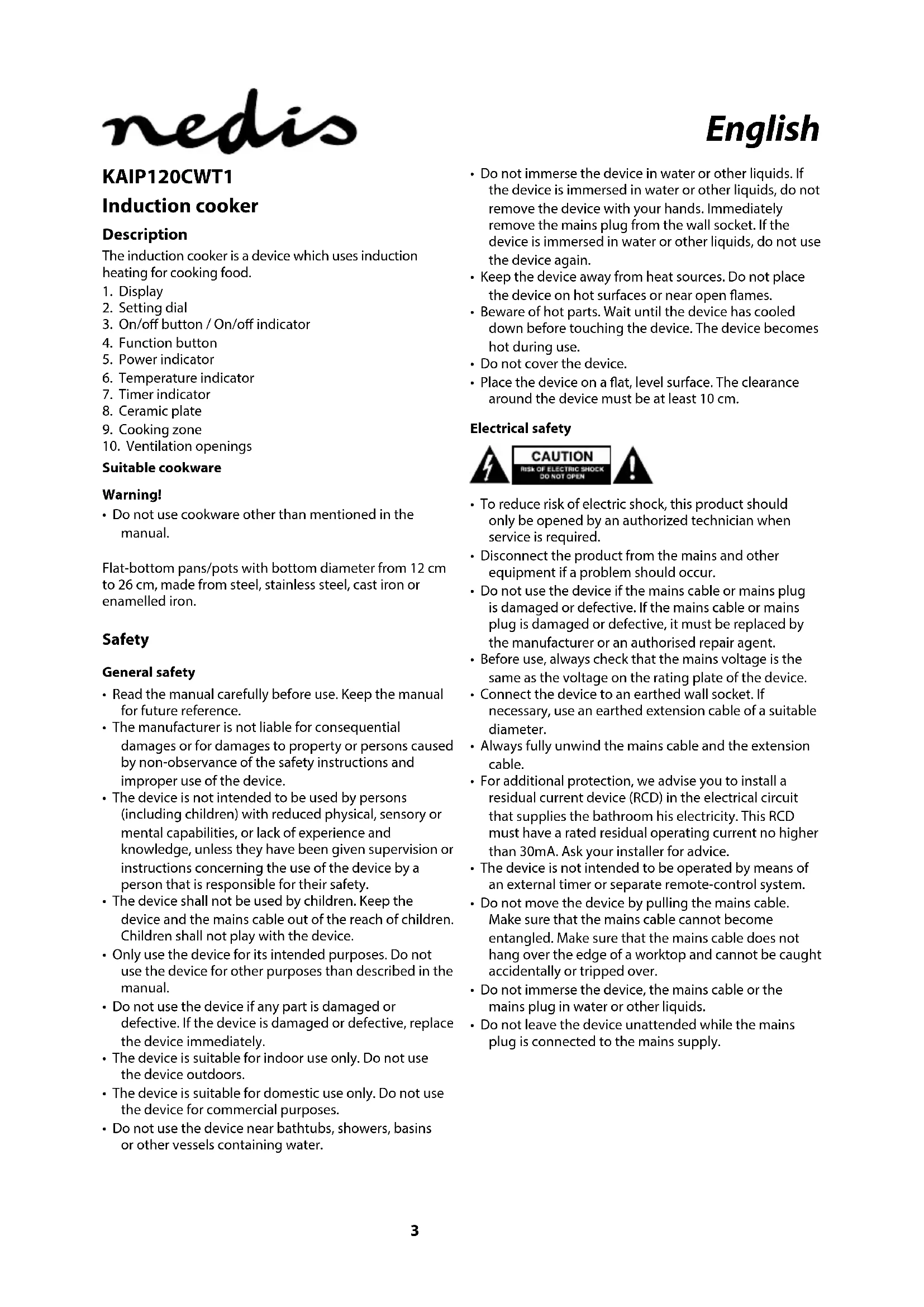 KAIP120CWT1 - Cooker NEDIS - Free user manual and instructions