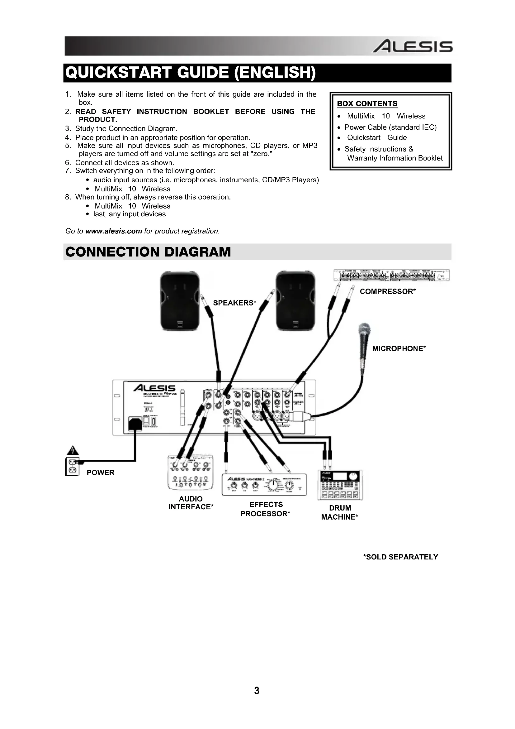 - last, any input devices Go to www.alesis.com for product registration. CONNECTION DIAGRAM
