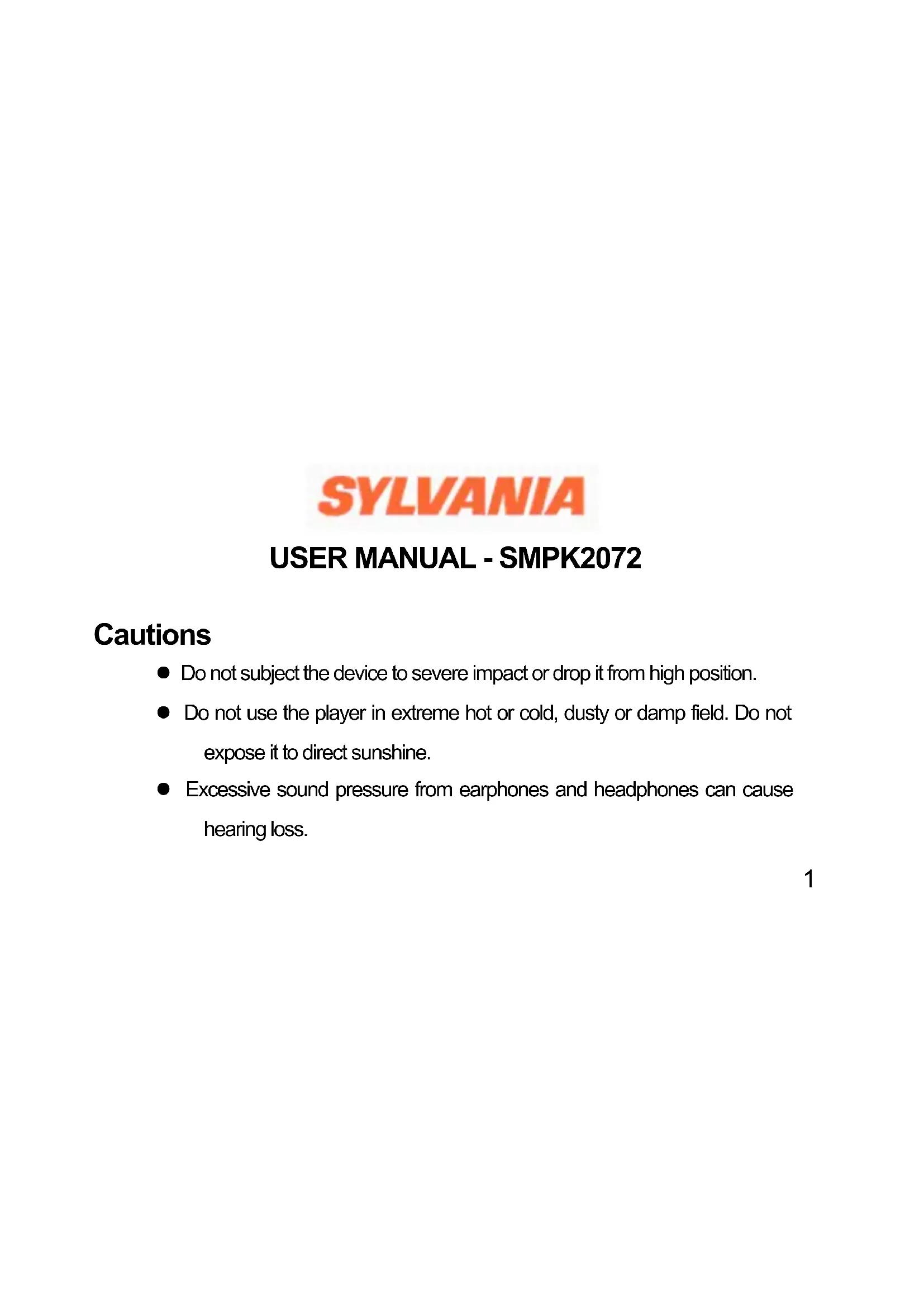Download the instructions for your Mp3 player in PDF format for free! Find your manual SMPK2072 - SYLVANIA and take your electronic device back in hand. On this page are published all the documents necessary for the use of your device. SMPK2072 by SYLVANIA.