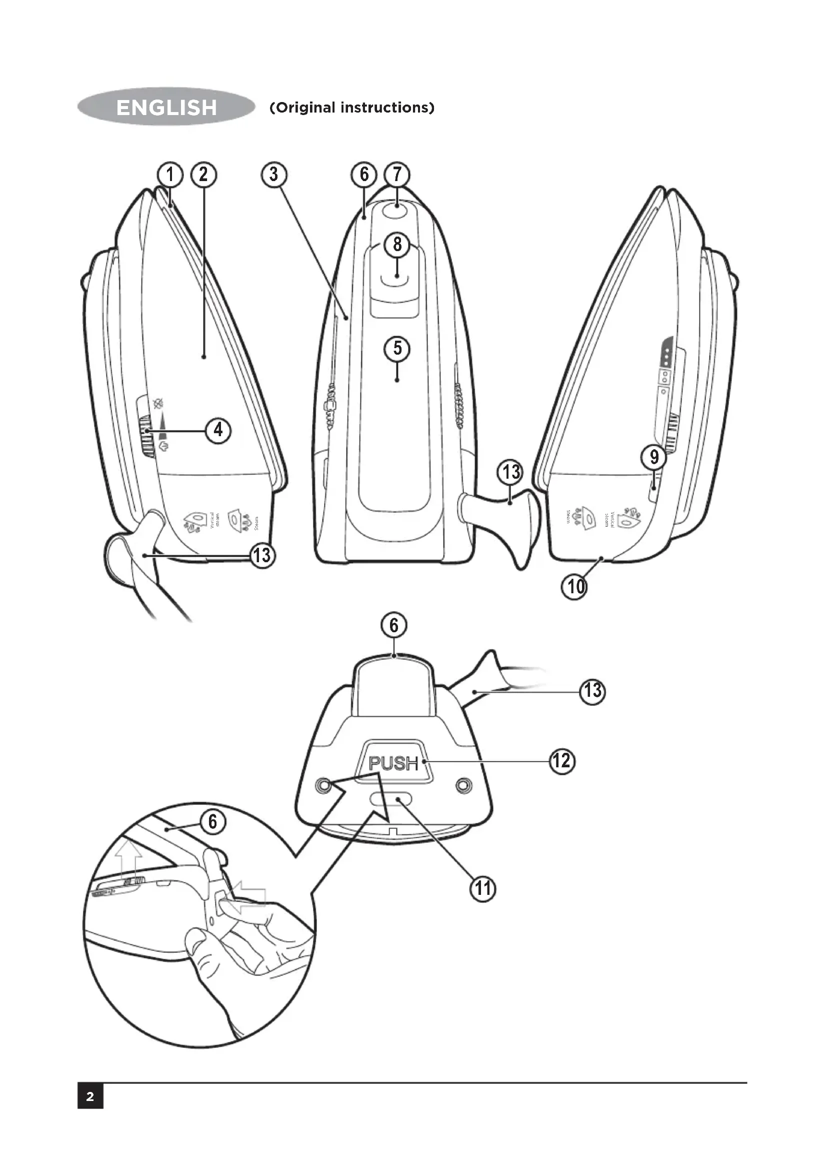 - The iron must not be left unattended while it is connected to the supply mains.(Original instructions) ENGLISH