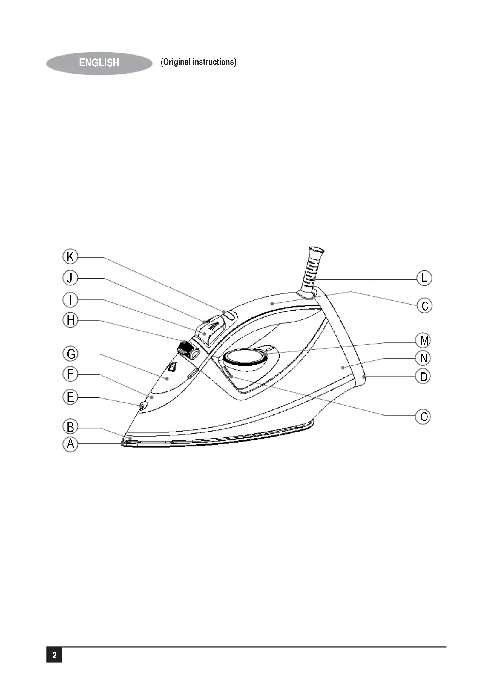 - If the supply cord is damaged, it must be replaced by the manufacturer or an authorised BLACK+DECKER Service Centre in order to avoid a hazard. Labels on Appliance The following pictograms along with the date code are shown on the appliance : Warning! Hot surface. Ceramic sole plate Vertical steam5 ENGLISH (Original instructions) Anti calc Variable steam Anti drip Steam shot Spray Self clean Auto shut off Features A: Soleplate B: Skirt C: Handle D: Back cover E: Spray nozzle F: Top cover G: Water inlet cover H: Variable steam button I: Spray J: Steam burst button K: Indicator light L: Cord guard M: Temperature dial N: Water tank O: Self clean button Before first use
