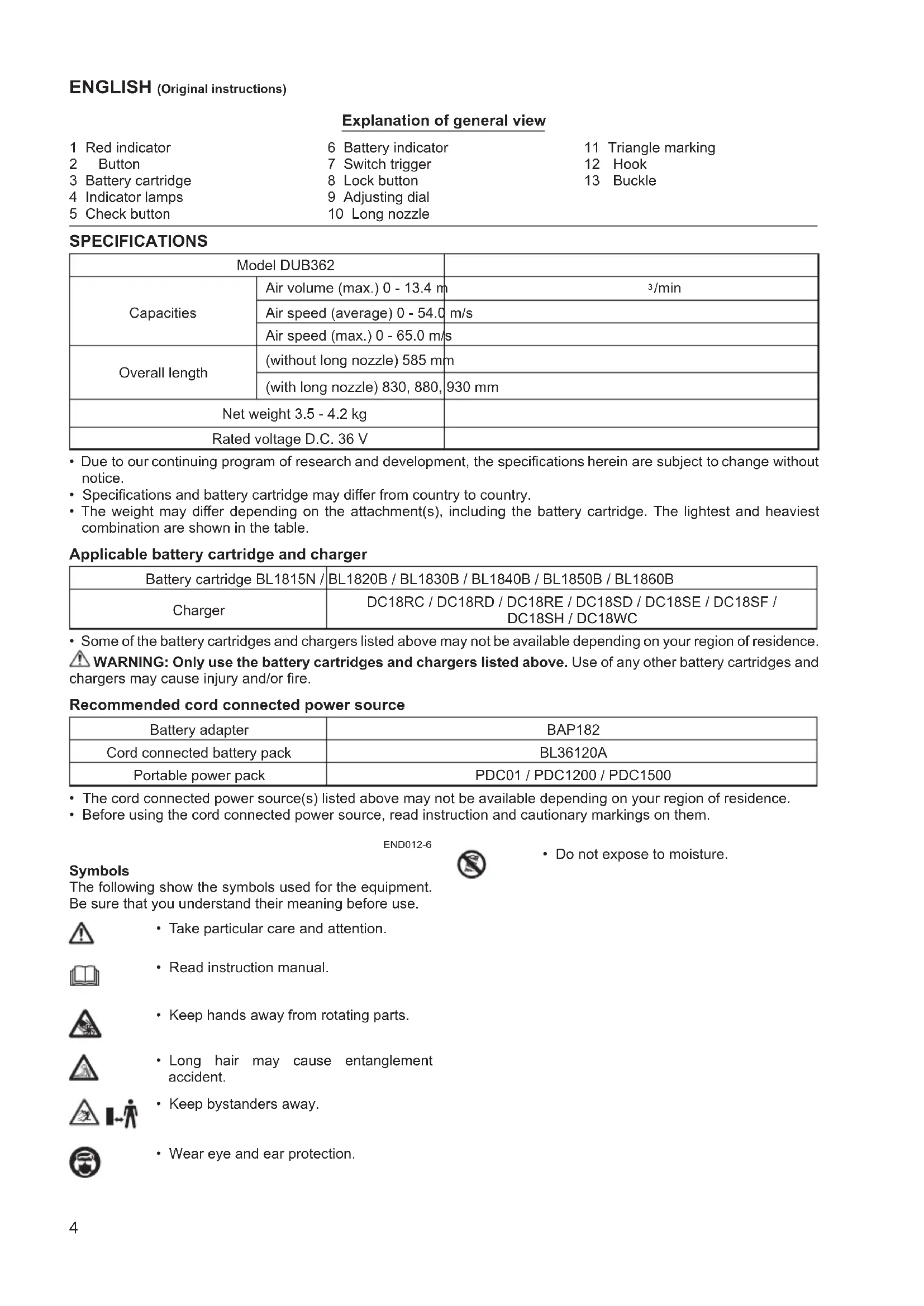 Download the instructions for your Leaf blower in PDF format for free! Find your manual DUB362Z - MAKITA and take your electronic device back in hand. On this page are published all the documents necessary for the use of your device. DUB362Z by MAKITA.