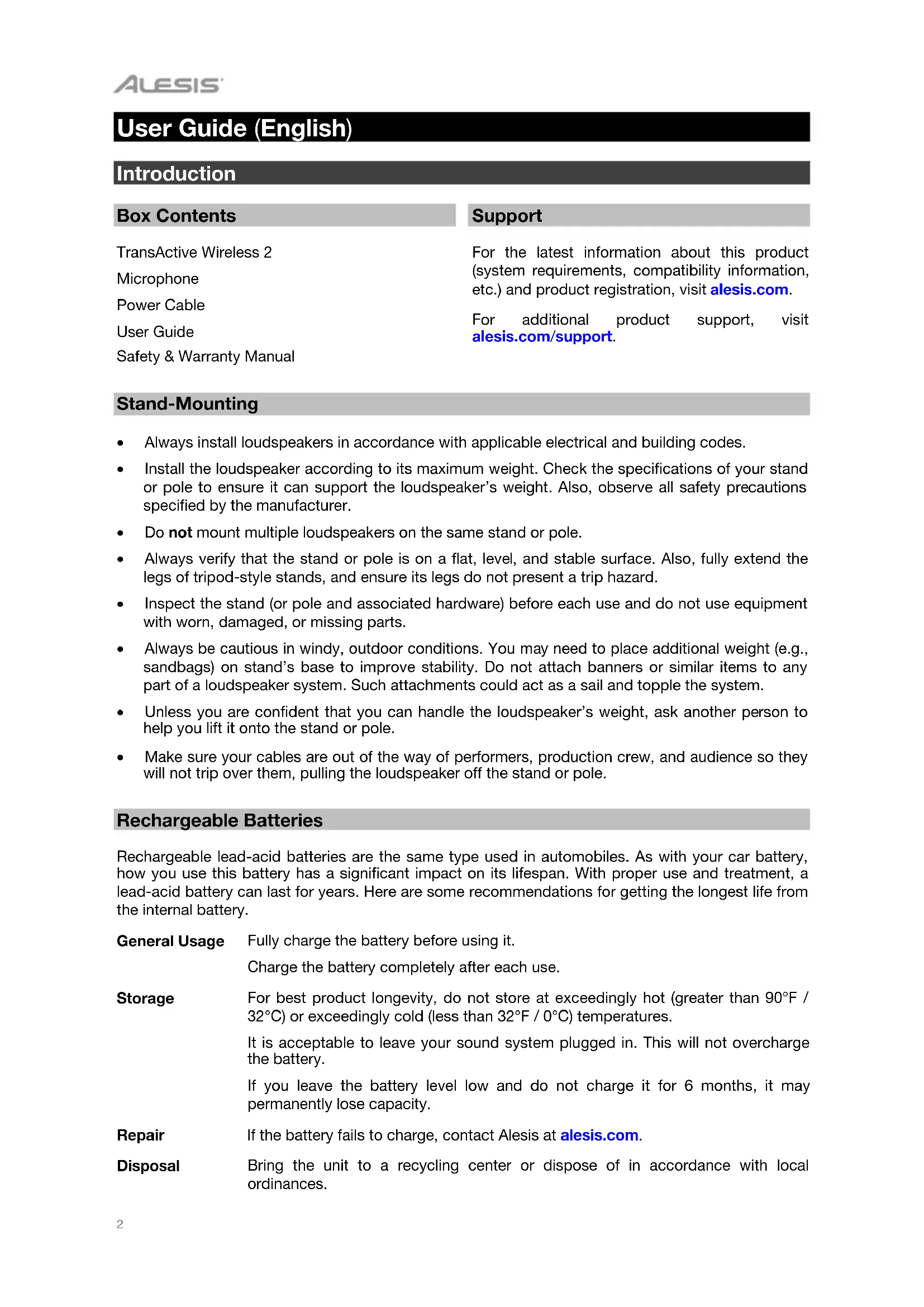 TransActive Wireless 2 - Speaker ALESIS - Free user manual and instructions