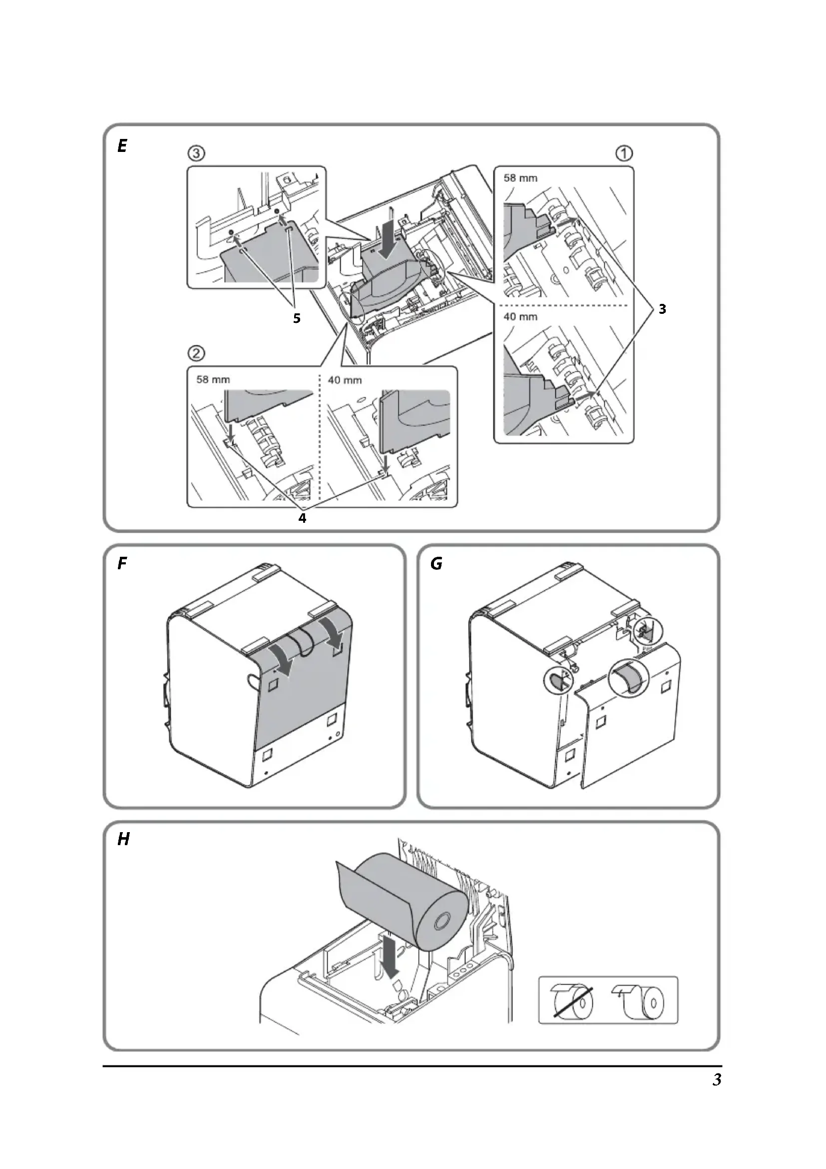 - When using a roll paper that is 58 mm wide, use the printer as it is.