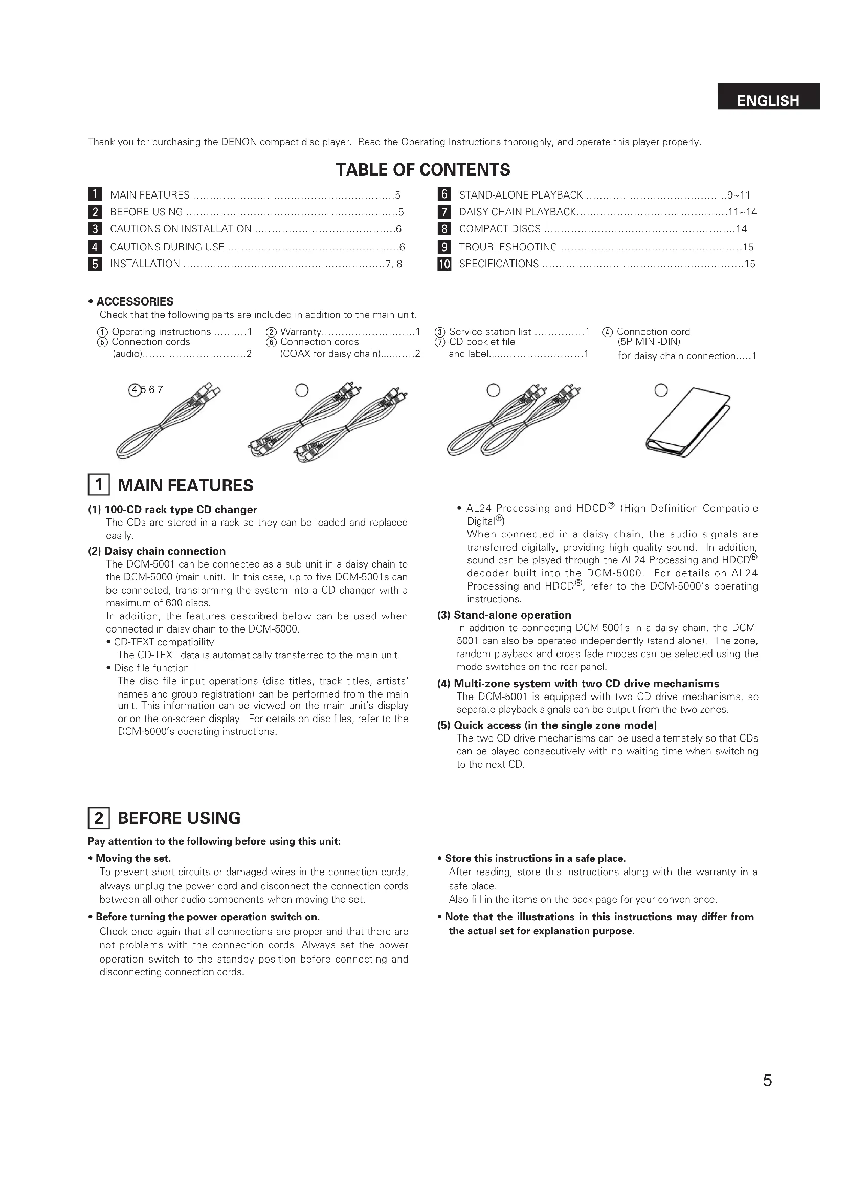 Download the instructions for your Cd player/recorder in PDF format for free! Find your manual DCM5001 - DENON and take your electronic device back in hand. On this page are published all the documents necessary for the use of your device. DCM5001 by DENON.