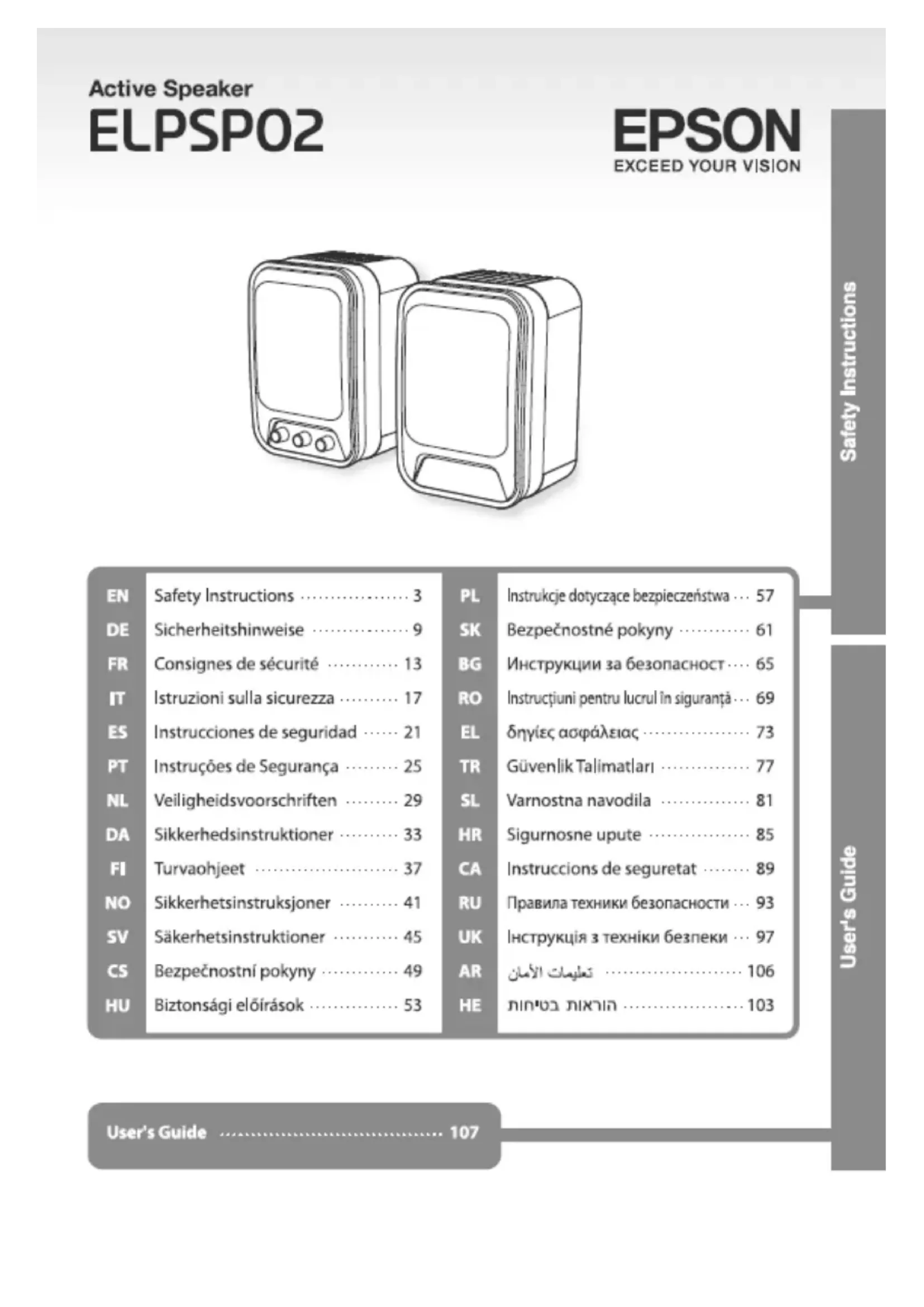 Download the instructions for your Speaker in PDF format for free! Find your manual ELPSP02 - EPSON and take your electronic device back in hand. On this page are published all the documents necessary for the use of your device. ELPSP02 by EPSON.