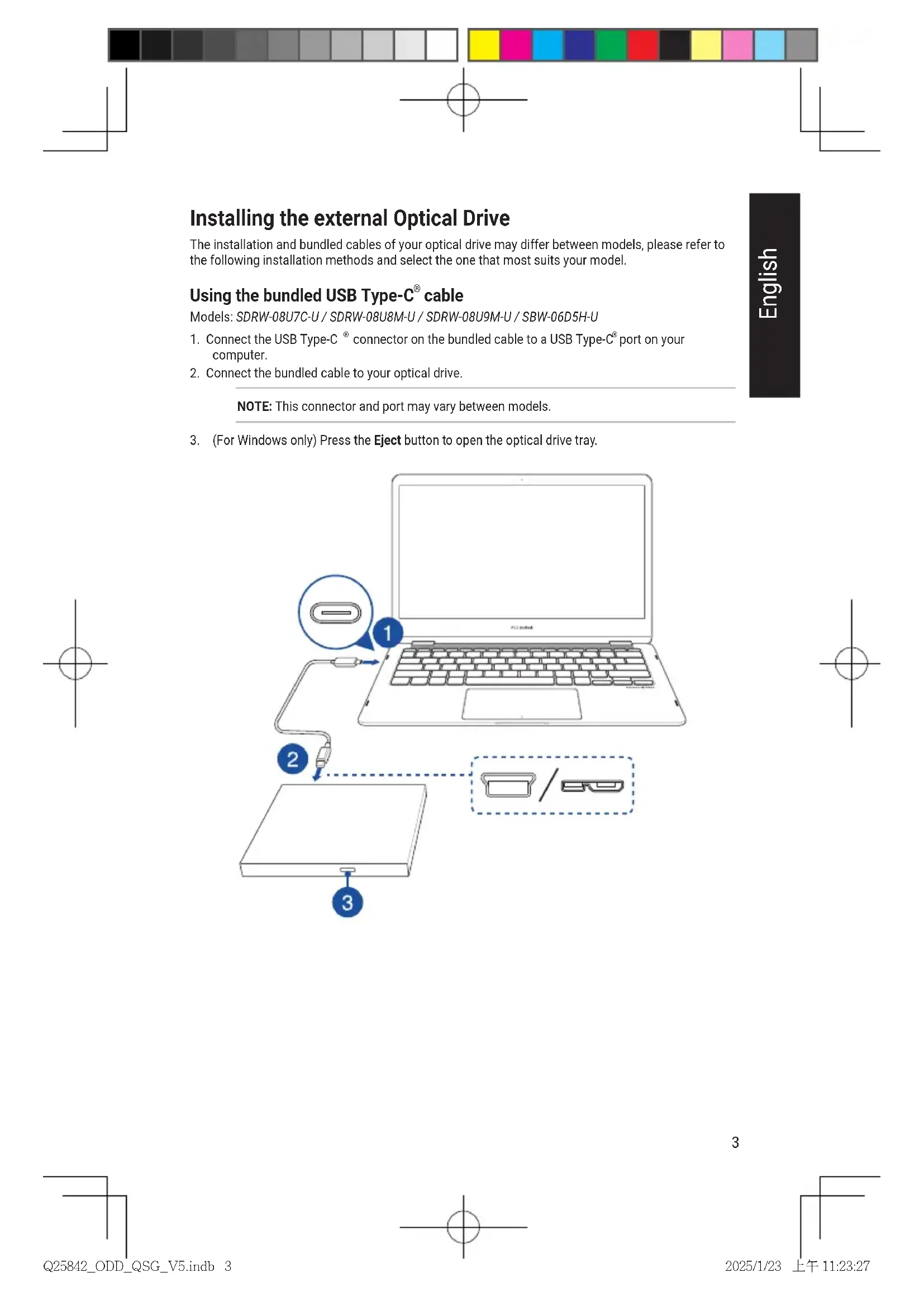 Installing the external Optical Drive English The installation and bundled cables of your optical drive may differ between models, please refer to the following installation methods and select the one that most suits your model.